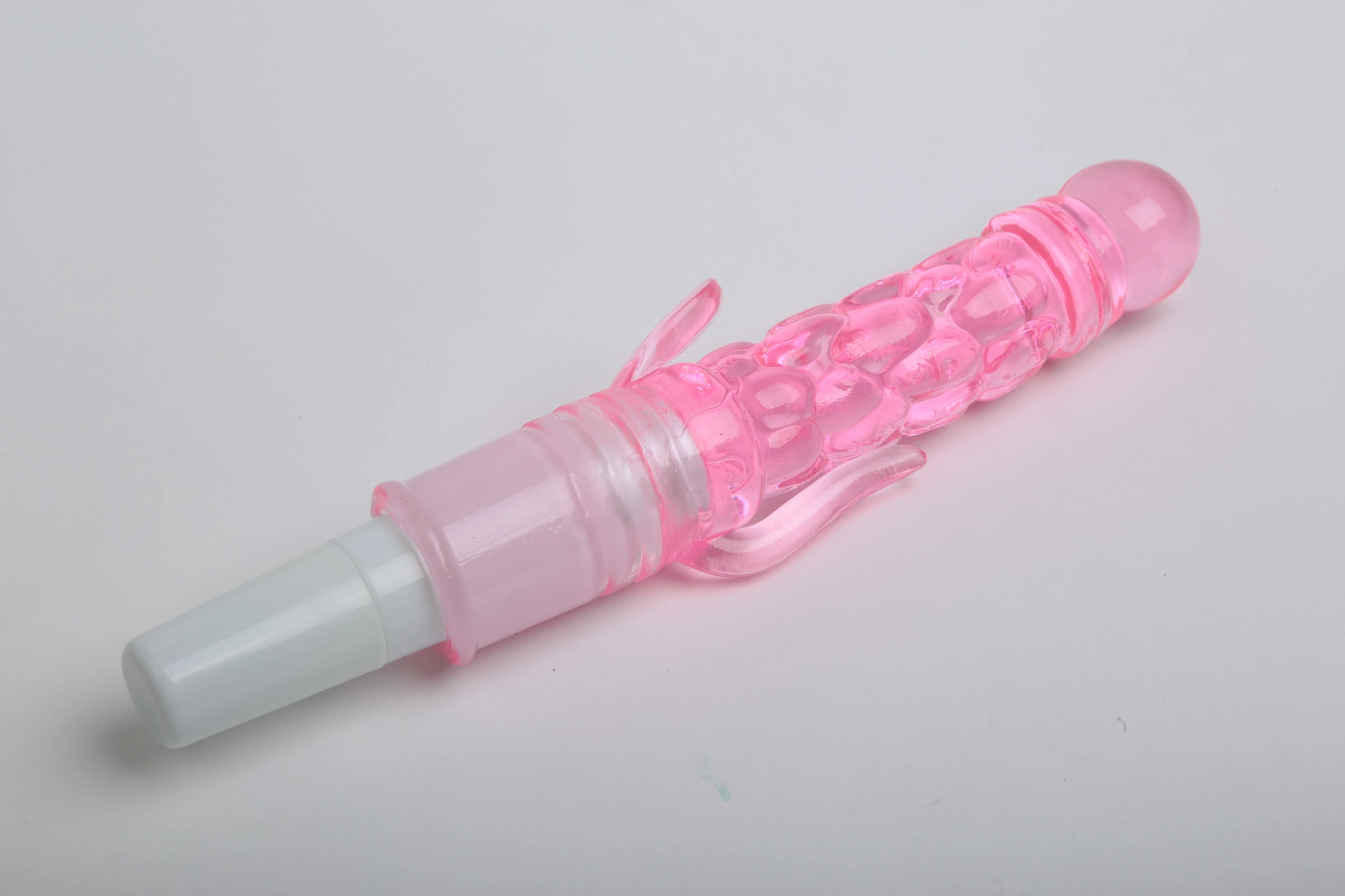 Вибратор розового цвета с двумя небольшими отростками. Изготовлен из TPR. Ребристая поверхность и ярко выраженная головка добавляют еще больше удовольствия. Имеет 1 скорость вибрации, которая удобно и плавно регулируются на ручке. Характеристики: общая длина - 21 см, рабочая длина - 10 см, максимальный диаметр — 2,7 см, длина отростков — 2 и 4 см, диаметр отростков — 0,8 см. Работает от 1АА батарейки (в комплект не входит). Упаковка: картонная коробка с принтом.