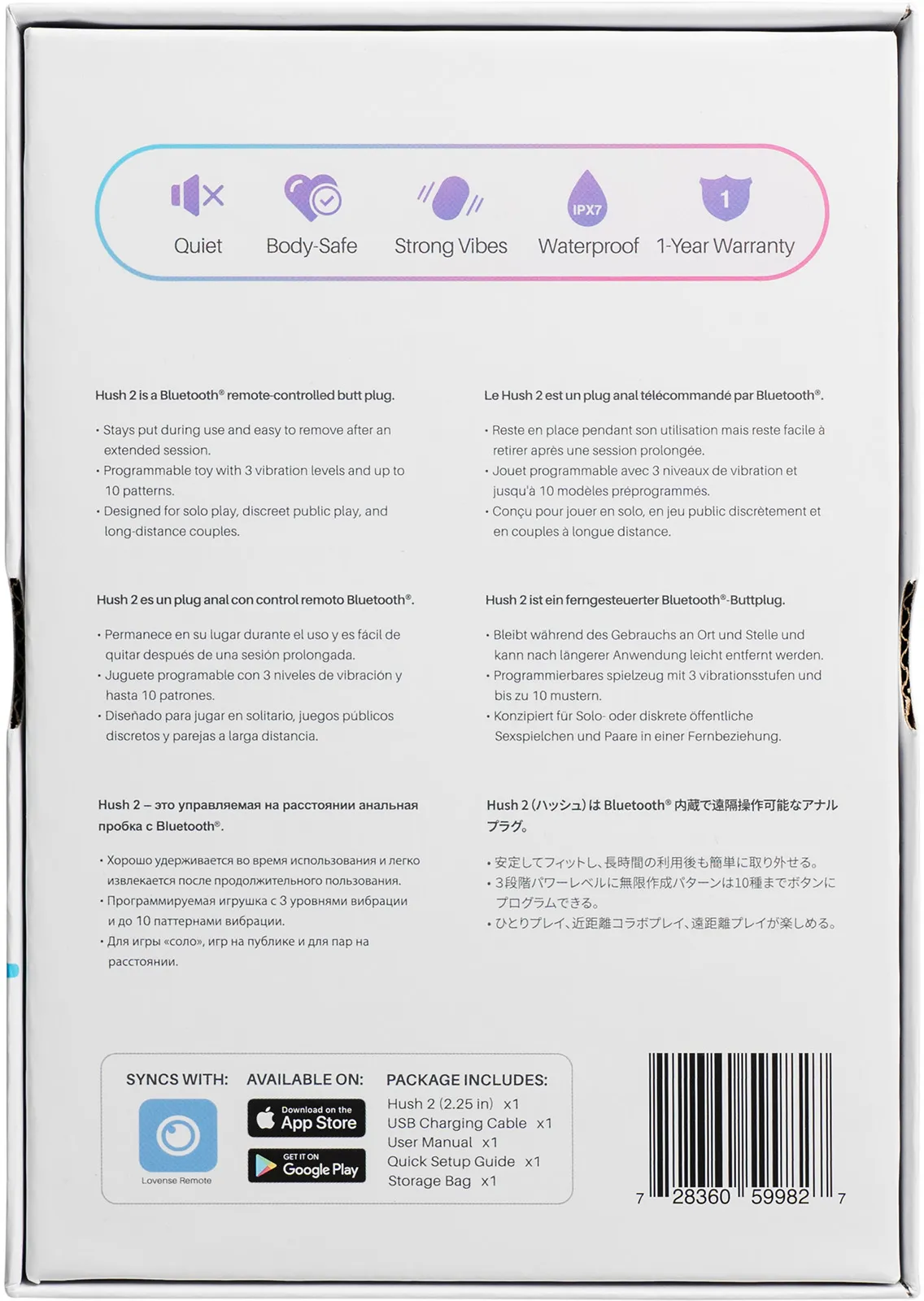 Lovense Hush 2 — это управляемая на расстоянии анальная пробка с Bluetooth. Размер M идеально подойдет для уверенных пользователей анальных практик. Полностью гладкое и бесшовное покрытие из медицинского силикона идеально подходит даже для длительного ношения,- просто выберите нужный вам уровень вибрации: низкий, средний или высокий, и наслаждайтесь ощущениями до 8-ми часов непрерывно. Шелковистый материал, узкий кончик и плавная форма обеспечивают комфортное введение, а выпуклая форма идеально соответствует естественной анатомии анального отверстия. Узкая ножка и широкий ограничитель гарантируют безопасность использования.