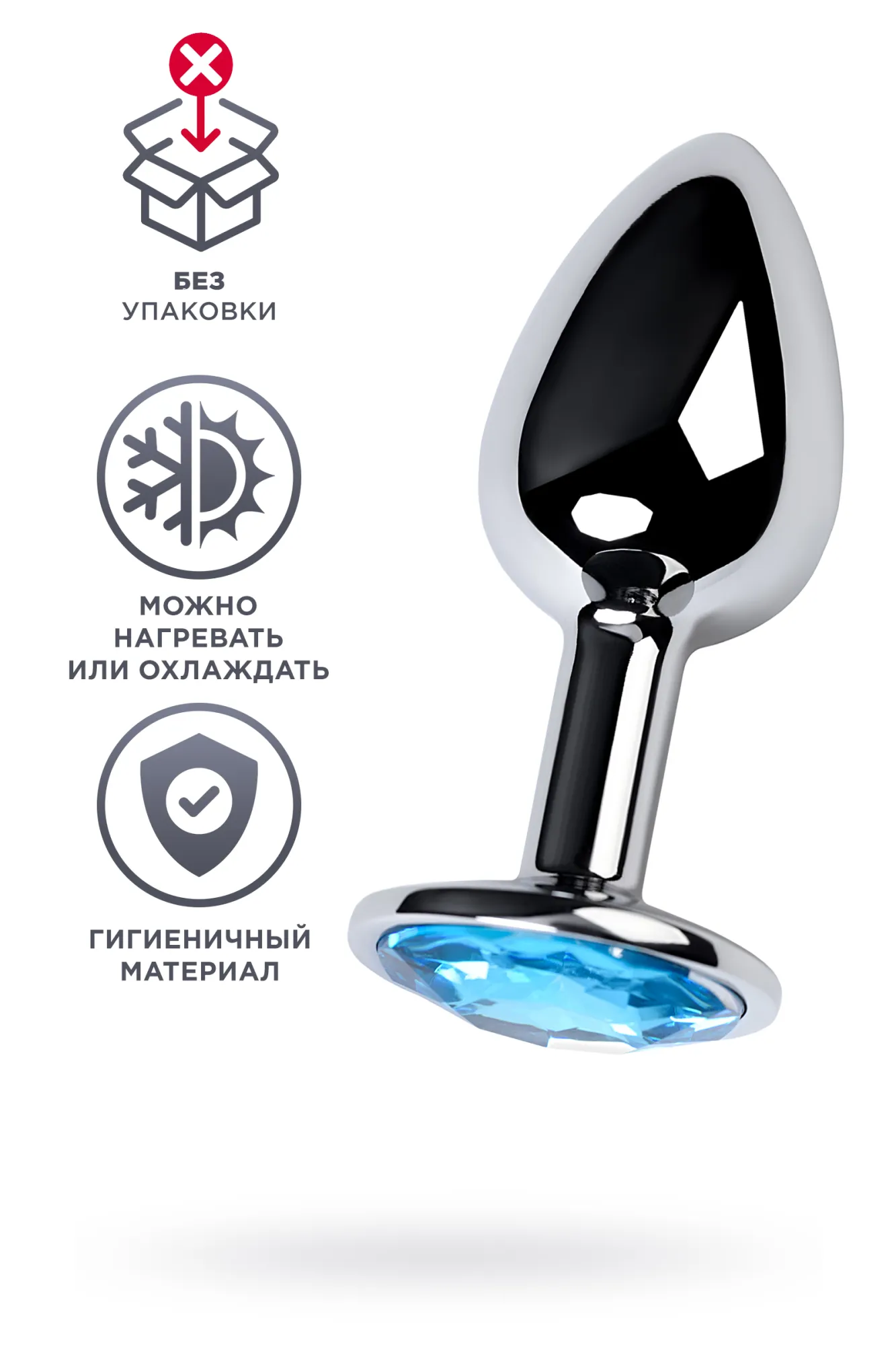 Металлическая втулка с ограничителем украшена стразом голубого цвета. Подходит для начинающих и практикующих анальные ласки. Металл - один из самых гигиеничных материалов, подходит для длительного ношения. Каплевидная форма облегчает введение и извлечение. Кроме того, металлическая пробка позволяет экспериментировать с температурой. Для комфортного использования использовать с лубрикантами.