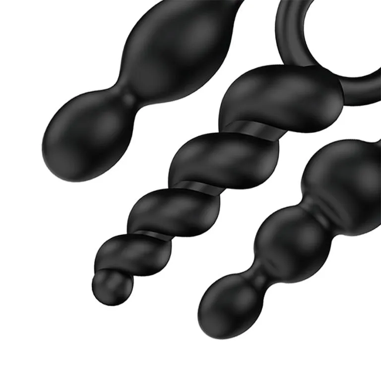 Satisfyer Plugs – набор из анальных стимуляторов. Три различных варианта, представляющие собой два и три звена разного диаметра, соединённые одной осью и спиралевидная форма.