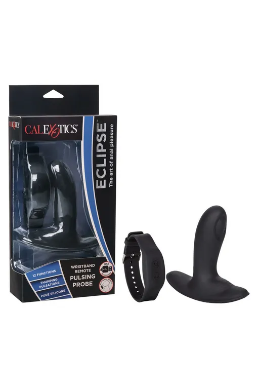 Eclipse Pulsing Probe – перезаряжаемое специализированное устройство для массажа простаты на дистанционном управлении с помощью браслета и с вращающейся бусинкой на кончике. Он изготовлен из гладкого литого гигиеничного силикона высшего качества, обеспечивающего удивительно приятные и гарнировано безопасные тактильные ощущения. Два мощных мотора анального стимулятора обеспечивает 12 вариантов равномерной глубокой вибрации и с функцию "пульсирующее воздействие"!