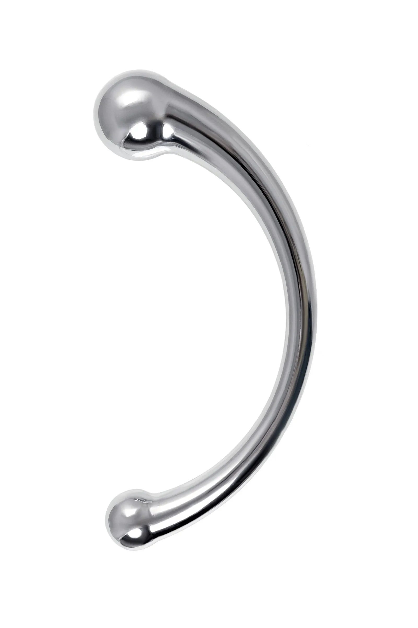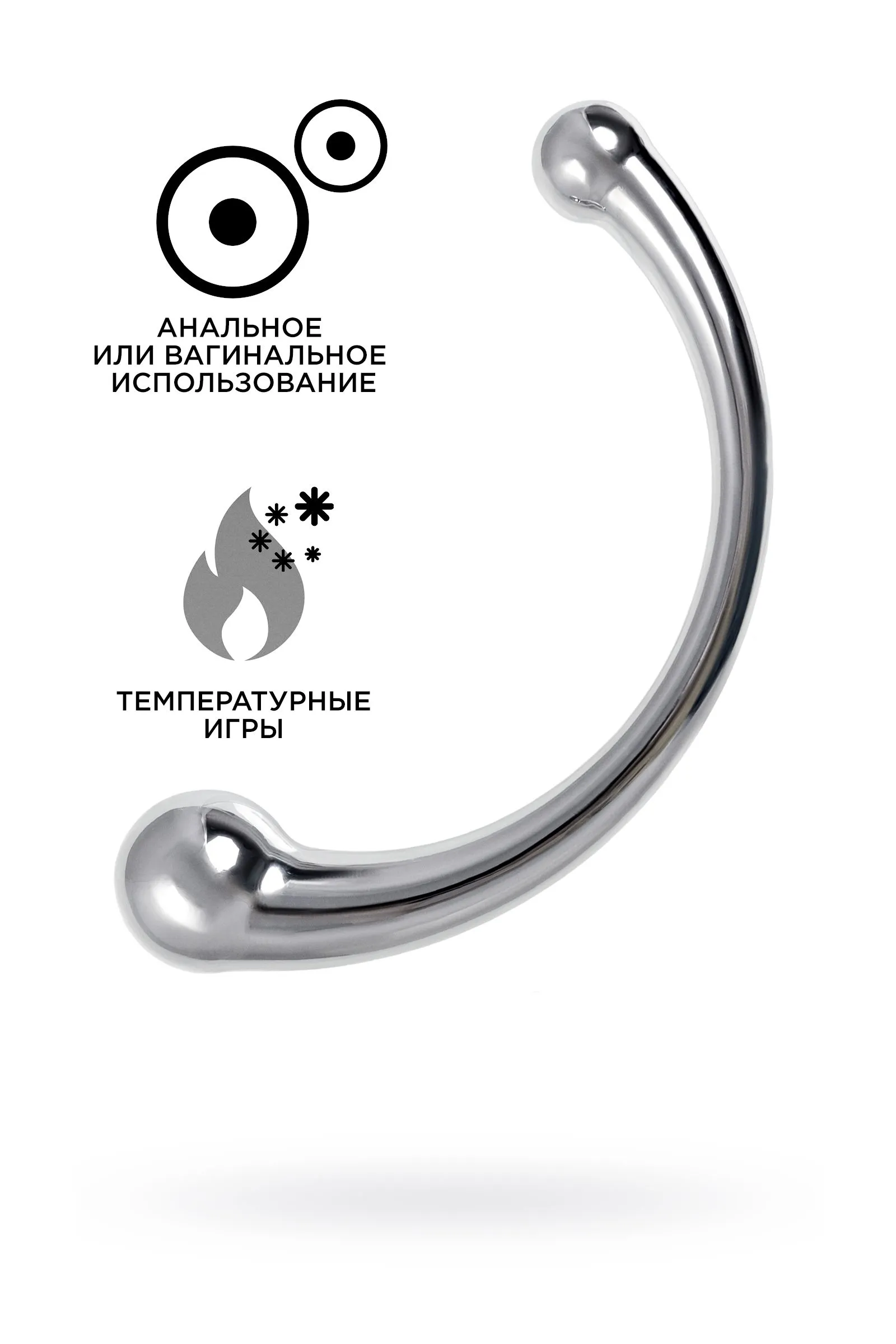 Металлический фаллоимитатор изогнутой формы с ярко выраженной головкой с обоих концов позволит испытать новые ощущения от чувственных экспериментов. Металл – один из самых безопасных и экологичных материалов, он прост в уходе, дружит со всеми видами смазок, а кроме того отлично поддается играм с температурами: для получения новых ощущений нагревайте или охлаждайте фаллоимитатор. Гладкость металла и плавность форм делают проникновение максимально комфортным. Приятная тяжесть добавит изюминку в сексуальную игру, что позволит получить еще больше наслаждения. С одной стороны диаметр головки 3,2 см – оптимальный размер для анальной или вагинальной стимуляции. Благодаря С-образной форме и внушительной головке отлично стимулирует зону G. Изогнутая форма удобно ложится в ладонь и вписывается как в сексуальную соло-игру, так и в парную