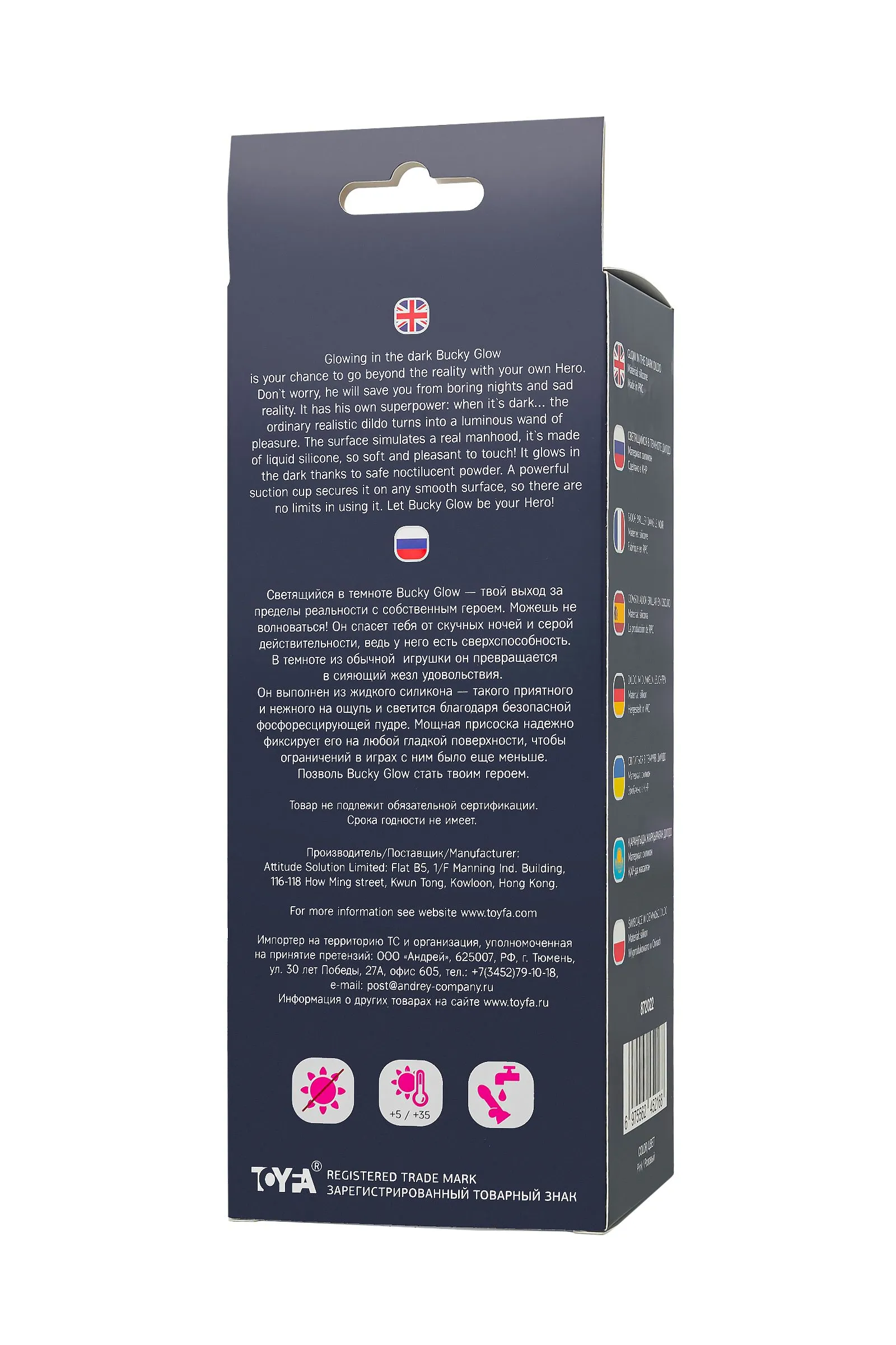 Светящийся в темноте Bucky Glow — твой выход за пределы реальности с собственным героем. Можешь не волноваться! Он спасет тебя от скучных ночей и серой действительности, ведь у него есть сверхспособность. В темноте из обычной игрушки он превращается в сияющий жезл удовольствия. Он выполнен из жидкого силикона — такого приятного и нежного на ощупь и светится благодаря безопасной фосфоресцирующей пудре. Мощная присоска надежно фиксирует его на любой гладкой поверхности, чтобы ограничений в играх с ним было еще меньше. Позволь Bucky Glow стать твоим героем. Материал - силикон Полностью светится в темноте Общая длина 14 см Водонепроницаемый