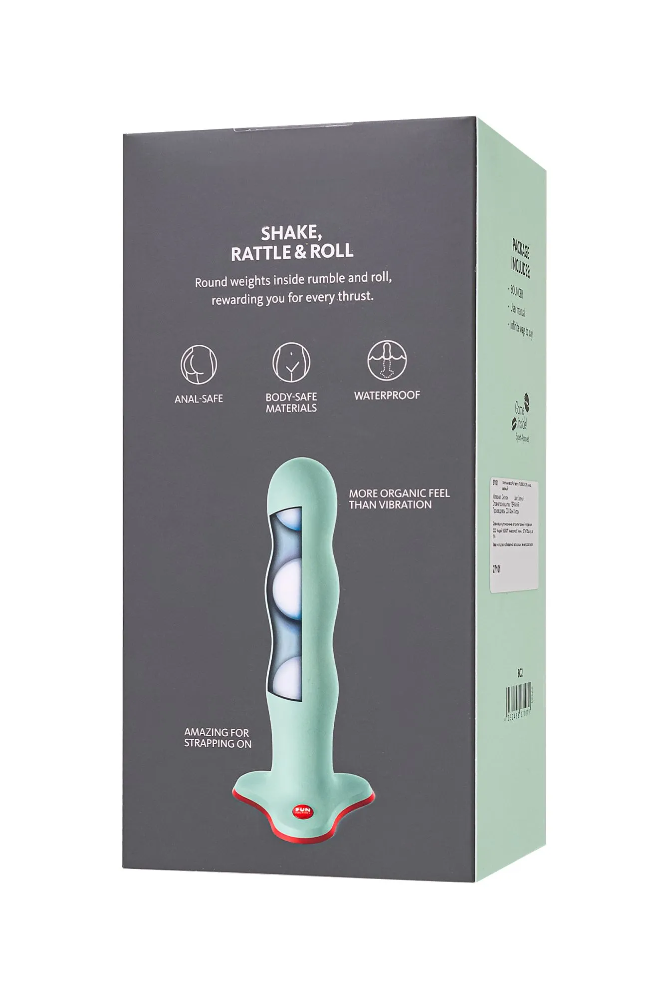 Добро пожаловать в мир удовольствия с фаллоимитатором Bouncer от Fun Factory – идеальным сочетанием страсти, инноваций и уникального дизайна. Этот продукт создан для того, чтобы подарить вам нечто совершенно новое в мире интимных удовольствий. Bouncer представляет собой нечто большее, чем просто фаллоимитатор. В его оригинальной форме скрыта мощная волна оргазмов. Электрификация без электричества – три вращающихся шарика внутри создают вибрации при каждом движении. Даже если вы не двигаете дилдо, он равномерно вибрирует, предоставляя вам непрерывное удовольствие Одна из главных особенностей Bouncer – возможность регулировать интенсивность. Чем чаще и активнее вы двигаетесь, тем сильнее двигаются шарики внутри. Медленное введение фаллоса обеспечивает деликатную обработку каждого миллиметра чувствительной области. Bouncer имеет объемную, умеренно гибкую идеально повторяющую анатомические изгибы влагалища форму. Это обеспечивает комфортное и плотное прилегание, доставляя максимальное удовольствие. Этот фаллоимитатор не только подарит вам удовольствие вагинально, но также идеально подходит для анальных ласк. Оснащенный присоской, Bouncer служит ограничителем и легко фиксируется на различных поверхностях, освобождая ваши руки для максимального наслаждения. Bouncer изготовлен из медицинского силикона и ABS пластика, обеспечивая максимальную безопасность для вашего тела. Основные преимущества Bouncer : Вибрация без батареек и электричества: Три шарика создают естественную вибрацию. Материал высокого качества: 100% гипоаллергенный медицинский силикон для безопасности и приятного ощущения. Hands-Free опция: Присоска на основании обеспечивает возможность фиксации на различных гладких поверхностях, добавляя разнообразие в игры. Кроме того, фаллоимитатор легко использовать в качестве страпона, для этого понадобятся трусики с креплением “кольцо”. Легкий и удобный: Сбалансированный вес 273 грамма. Длина игрушки 18,5 см, диаметр 3,9 см Водонепроницаемость: 100% водонепроницаем, быстро принимает температуру тела и легко охлаждается для контрастных ощущений. Цвет: Sage Green (Зеленый шалфей) Производится в Германии.