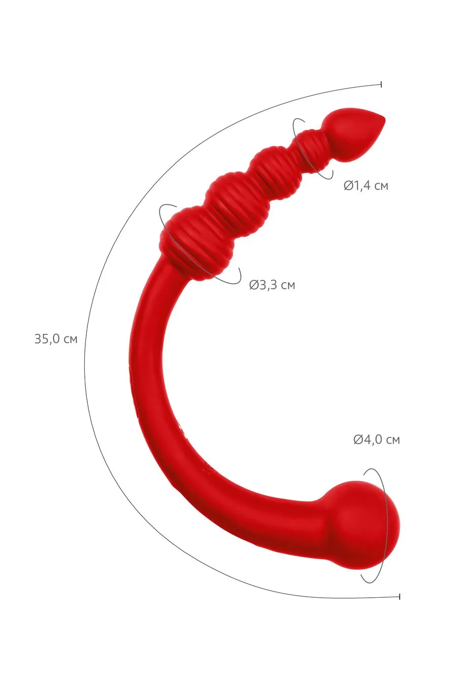 • Анальная цепочка из 4 шариков с ребристой поверхностью (диаметр от 2,3 до 3,5 см) — создаёт волнующую стимуляцию чувствительных зон, постепенно увеличивая интенсивность ощущений. Заканчивается каплевидным наконечником для более легкого введения.