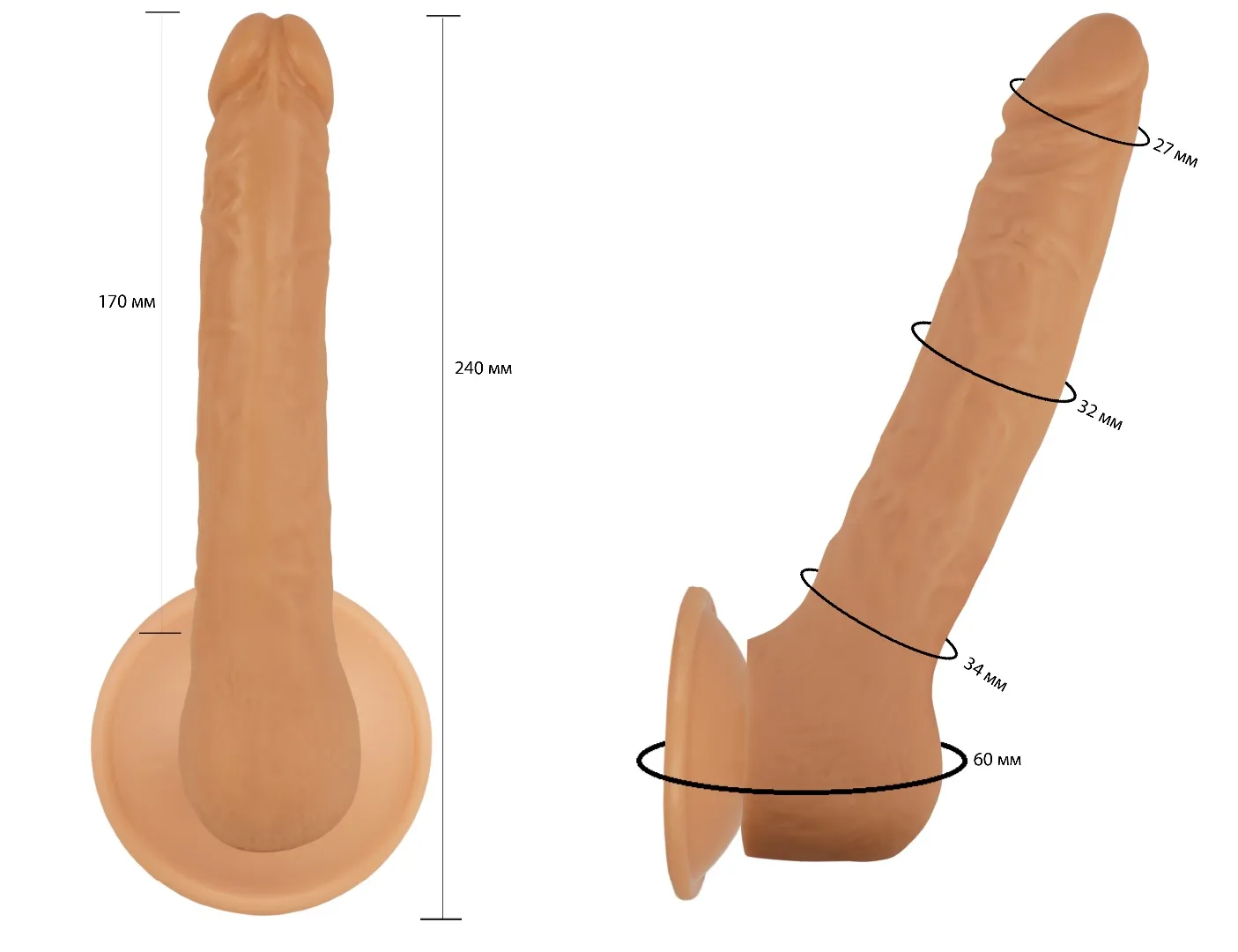 Фаллоимитатор имеет полужесткую структуру и искривлен таким образом, что полностью имитирует физиологическое положение мужского члена. При такой форме и жесткости можно использовать как для анального, так и вагинального секса. Ребристая поверхность придает брутальность и усиливает ощущения во время близости.