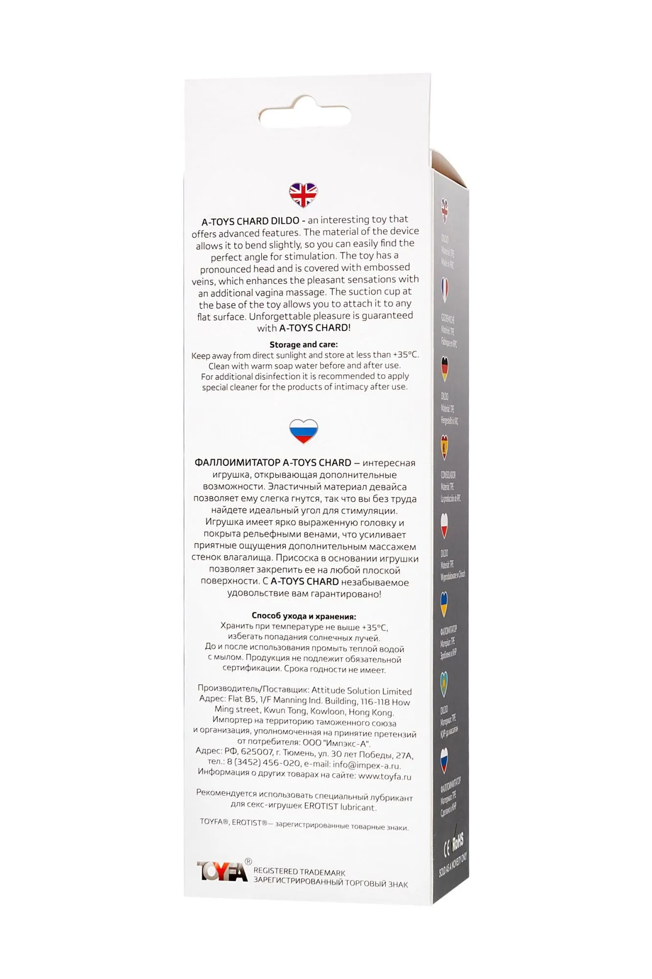 Фаллоимитатор A-Toys Chard – интересная игрушка, открывающая дополнительные возможности. Эластичный материал девайса позволяет ему слегка гнутся, так что вы без труда найдете идеальный угол для стимуляции. Игрушка имеет ярко выраженную головку и покрыта рельефными венами, что усиливает приятные ощущения дополнительным массажем стенок влагалища. Присоска в основании игрушки позволяет закрепить ее на любой плоской поверхности. С A-Toys Chard незабываемое удовольствие вам гарантировано! Общая длина: 18 см Рабочая длина: 16,5 см Диаметр: 3,5 см