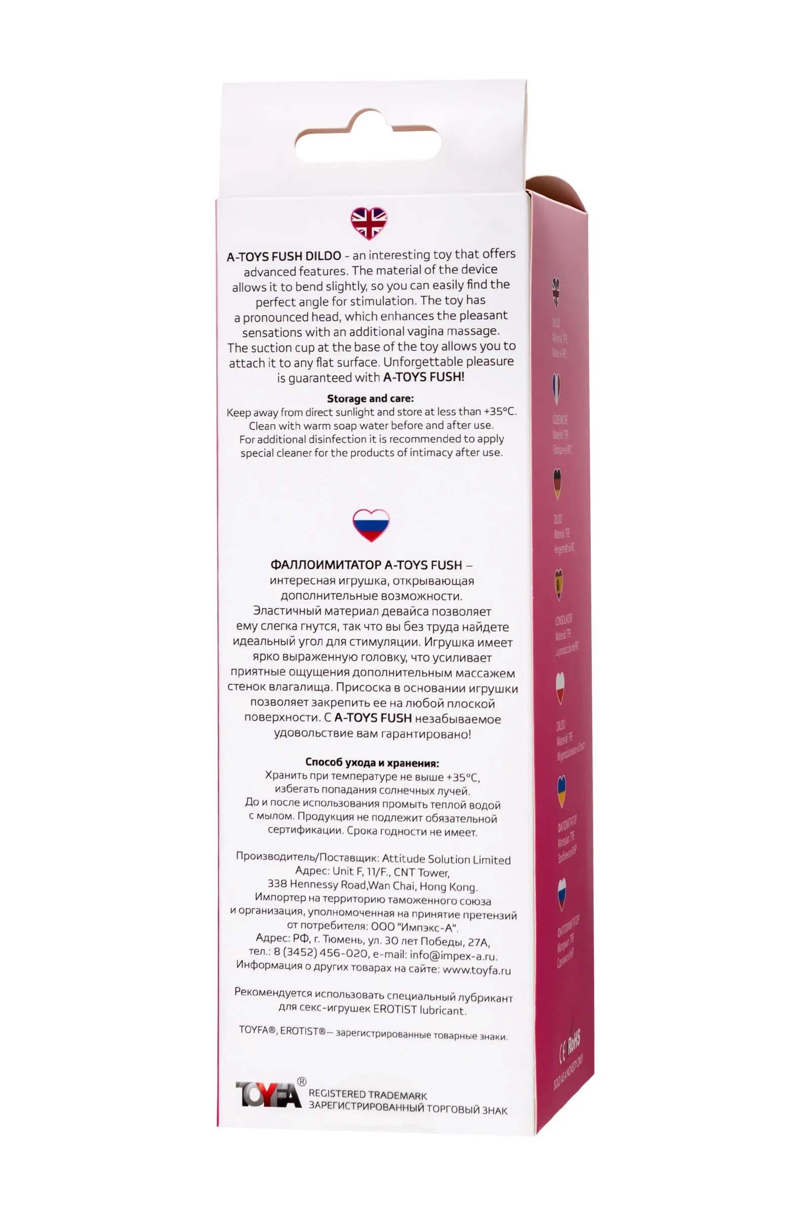Фаллоимитатор A-Toys Fush – интересная игрушка, открывающая дополнительные возможности. Эластичный материал девайса позволяет ему слегка гнутся, так что вы без труда найдете идеальный угол для стимуляции. Игрушка имеет ярко выраженную головку, что усиливает приятные ощущения дополнительным массажем стенок влагалища. Присоска в основании игрушки позволяет закрепить ее на любой плоской поверхности. С A-Toys Fush незабываемое удовольствие вам гарантировано! Общая длина: 18 см Рабочая длина: 13 см Диаметр: 3,5 см