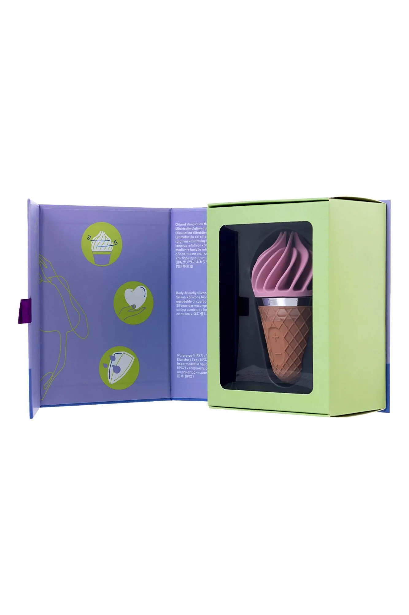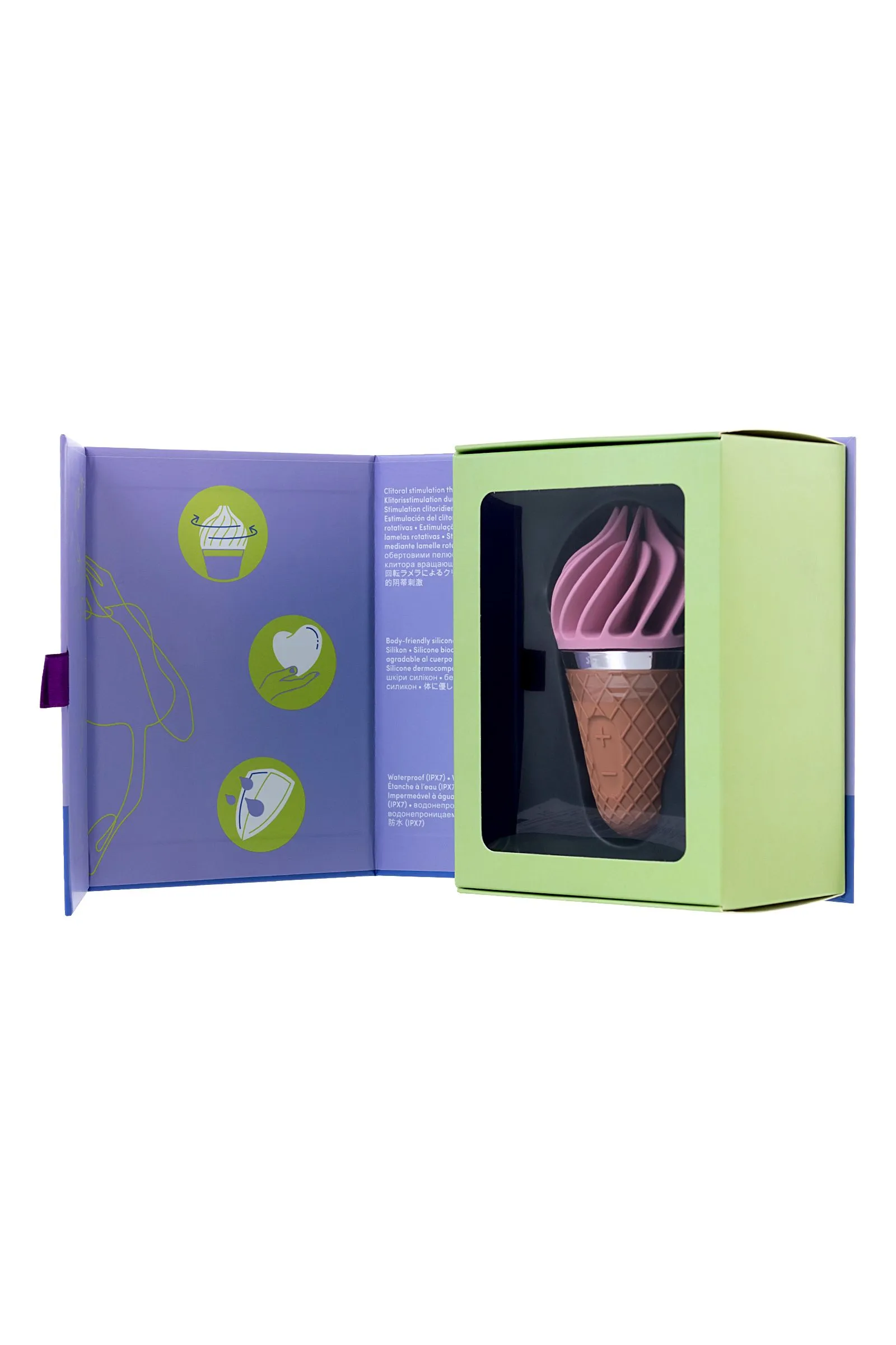 Красочный, лакомый и смелый — спиннатор Satisfyer layons Sweet Treat утоляет жажду наслаждения словно холодное мороженое в жаркий летний день. Очаровательный дизайн в виде вафельного рожка и большая мощность вращения делают этот вибратор украшением даже самой потрясающей коллекции игрушек. Закругленный кончик Sweet Treat состоит из нежных заостряющихся лепестков, которые ласкают клитор так, будто хотят, чтобы вы растаяли в неге блаженства. Обольстительные программы из 4-х ритмов и 3-х скоростей вращения в каждую сторону провоцируют на громкие стоны. А полностью водонепроницаемая поверхность призывает устроить релакс-программу в бодрящем душе или расслабляющей ванне. Неважно, дадите ли вы своему источнику наслаждения выступить в роли солиста или воспользуетесь им для совместной прелюдии с партнером — в любом случае Satisfyer Layon Treat станет лучшим десертом, который вы когда-либо пробовали. Бесшумный режим работы помогает держать в секрете свои шалости Полная водонепроницаемость гарантирует безопасность использования в воде Гипоаллергенный силикон не вызывает раздражений на коже 15 лет гарантии Не отказывайте себе в сладком удовольствии, поддайтесь на заигрывания Sweet Treat.