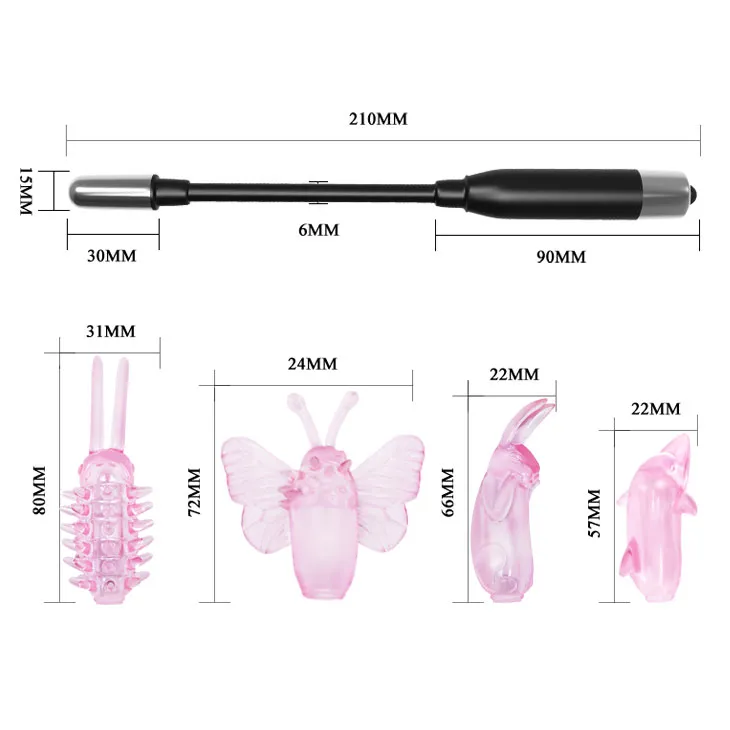 Стимулятор клитора имеет 4 насадки (бабочка, зайчик, дельфин и гусеница) со встроенной вибро-пулькой. Вибростимулятор клитора выполнен из мягкого ТПР материала. Управление клиторального вибростимулятора - встроенное, с одним режимом вибрации. В комплект вибростимулятора входит один комплект батареек. Отличное качество и довольно демократическая цена - положительные качества вибростимулятора для клитора. Характеристики: общая длина- 24 см, максимальная ширина- 7 см, цвет- черный, розовый. Упаковка: картонная коробка с принтом.