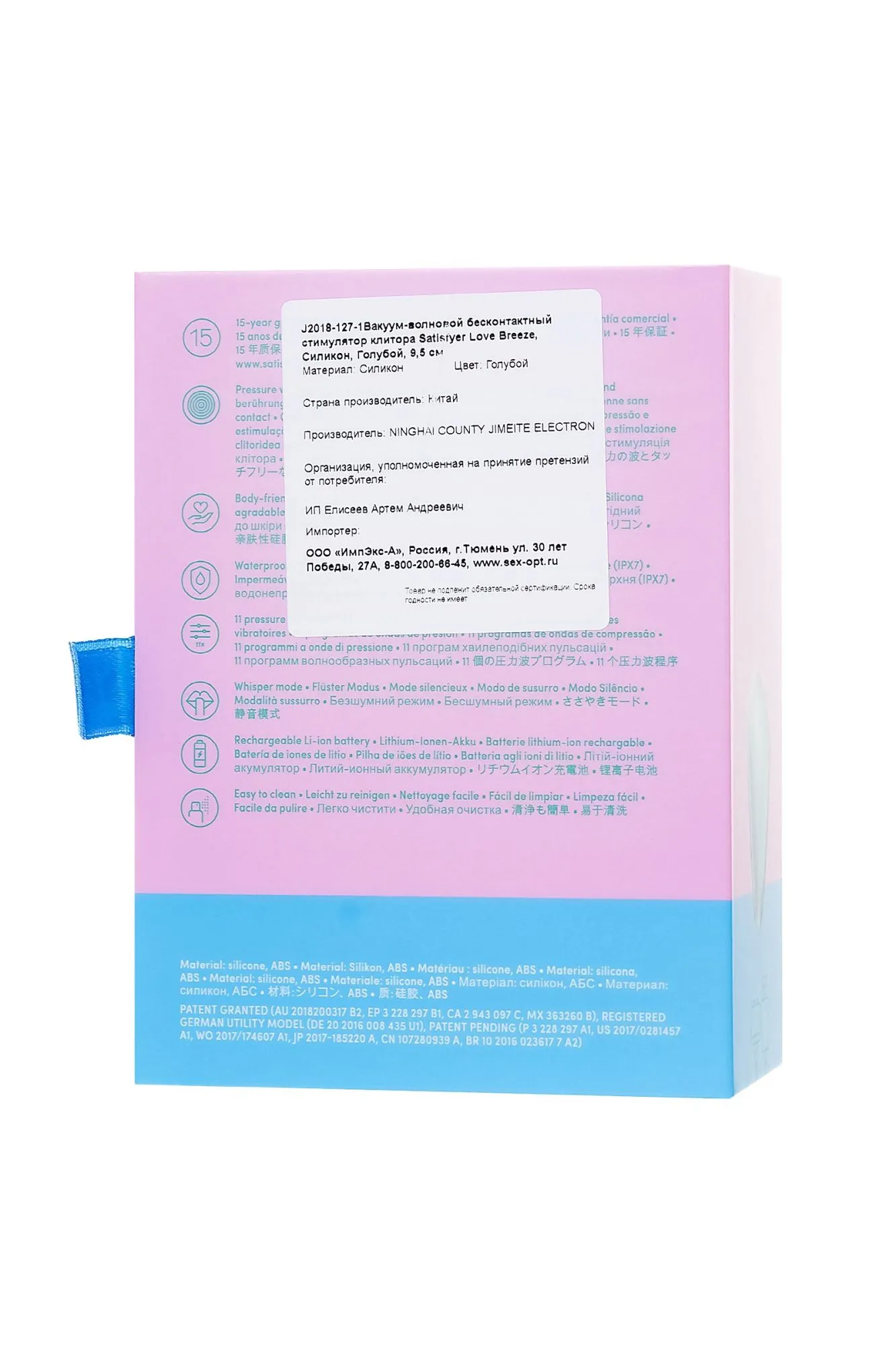Приходите на волну сексуального удовольствия с Love breeze. Позвольте этому удобному стимулятору уникальной и эргономичной формы идеально лежать в ладони, пока вы наслаждаетесь технологией Air Pulse и дополнительным параметрам вибрации. Позвольте вашему клитору комфортно находится в мягком силиконовом кончике. Направьте свое удовольствие с помощью 11 вариантов Air Pulse. Love Breeze имеет степень водонепроницаемости IPX7, поэтому его легко использовать в душе или ванне, что делает его идеальным спутником в конце долгого дня! Вы найдете то, что вам нужно, и никогда не забудете взять его с собой в путешествие!