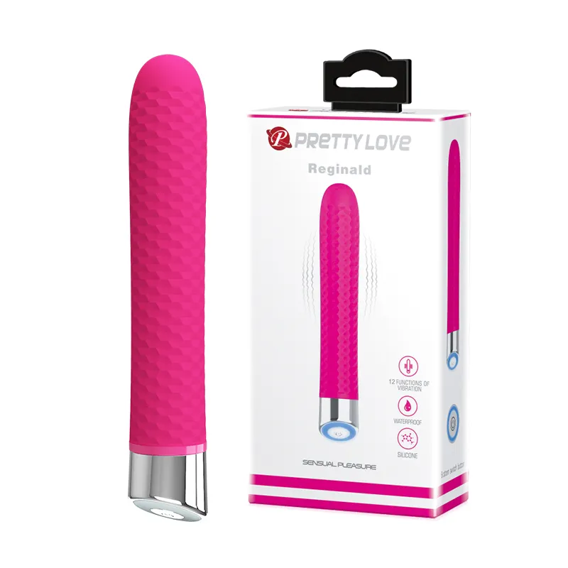 Вибростимулятор нежного цвета с рельефной поверхностью. Изготовлен из силикона, приятен на ощупь. Имеет 12 режимов вибрации. Режимы переключаются при помощи кнопки в основании игрушки. Работает от 2-х батареек ААА (нет в комплекте). Общая длина - 16,7 см,максимальный диаметр -2,7 см. Упаковка - коробка с принтом.