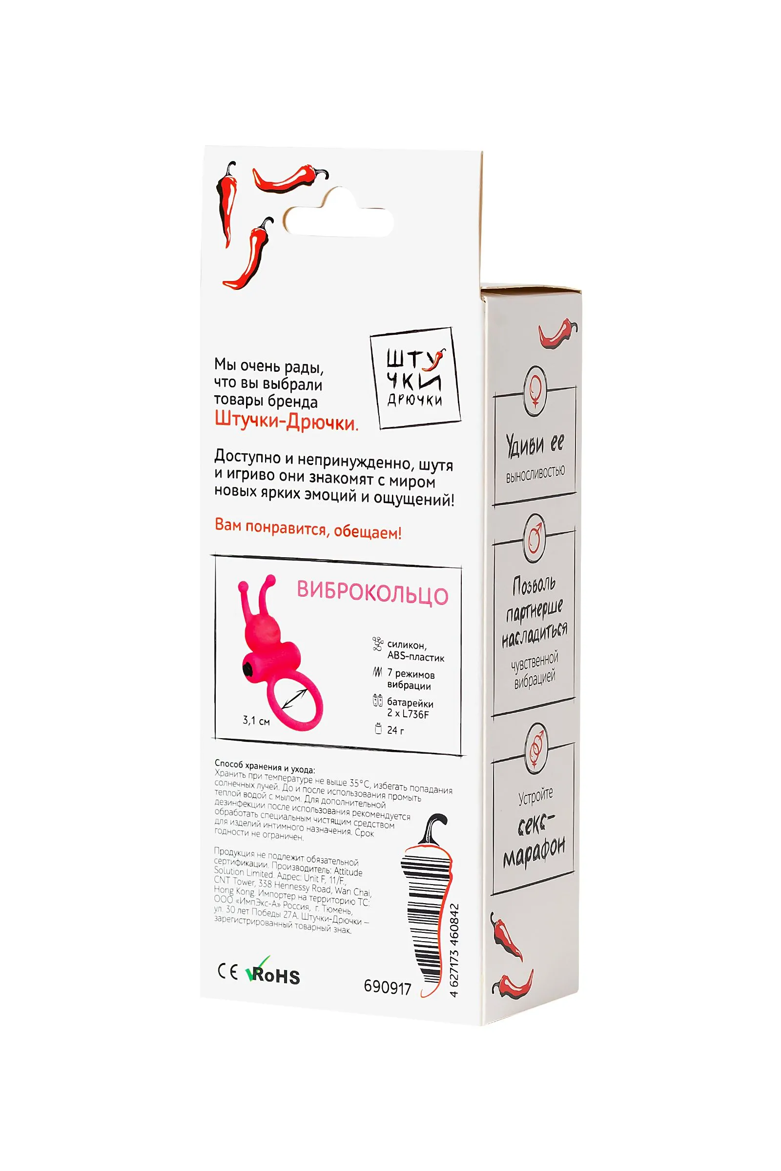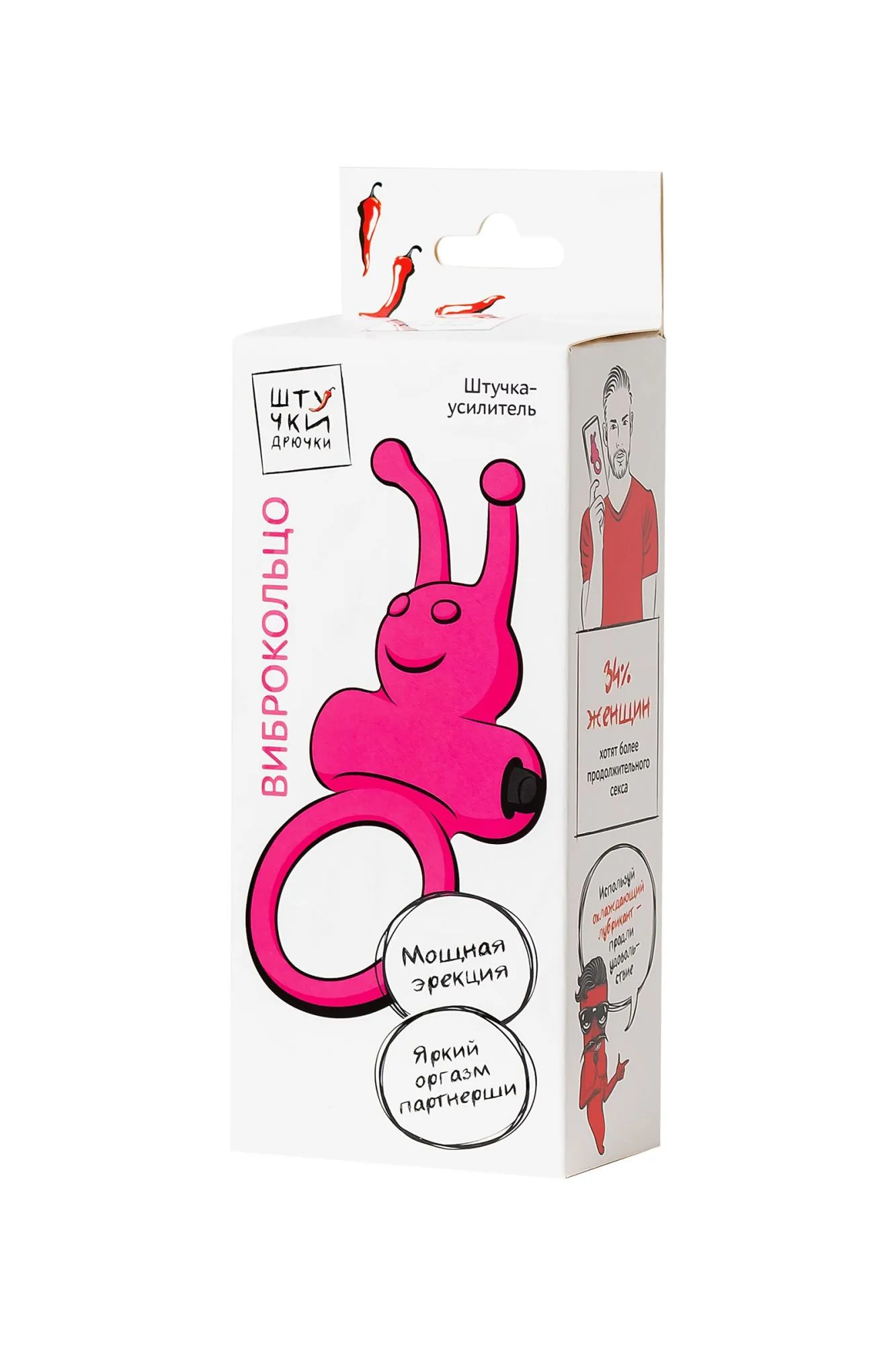 Кольцо розовое эрекционное Силиконовое виброкольцо «Штучки-Дрючки» - представитель нового поколения эрекционных колец. Если раньше эти круглые штучки заботились о репутации мужчин – усиливали и продлевали эрекцию, то сейчас нацелены на удовольствии партнерши. • Забавный смайлик с рожками своими нежными вибрациями выполняет чувственный массаж клиторальной зоны, доводя до наслаждения 2.0 и взрывного оргазма. • Съемная вибропуля позволяет использовать штучку как в режиме вибрации, так и без нее. • Кольцо выполнено из качественного медицинского силикона, легко растягивается и подойдет под любой размер пениса. • Влагоустойчивость еще один плюс виброкольца, после очищения его можно использовать повторно. Достаточно вынуть перед мытьем вибропулю. Наслаждайся плодами эволюции вместе с виброкольцом «Штучки-Дрючки» и выводи свое удовольствие на новый уровень.
