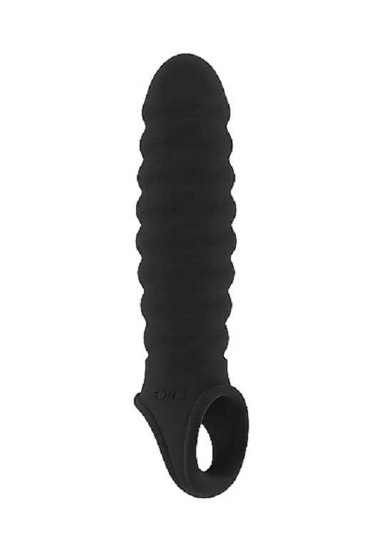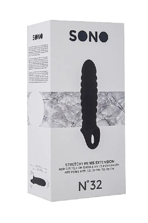 No.32 Stretchy Penis Extension – насадка закрытого типа для небольшого увеличения длины и обхвата полового члена с кольцом для фиксации на мошонке. Она имеет округлую головку и спиралевидную форму для более оптимальной стимуляции. Насадка произведена из высококачественного мягкого материала.