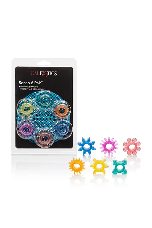Senso 6 Pak - набор из шести колец со стимулирующими деталями, предназначенных для поддержания эрекции. Они изготовлены из прочной, но при этом эластичной и мягкой, гладкой, гигиенически превосходной термопластичной резины.