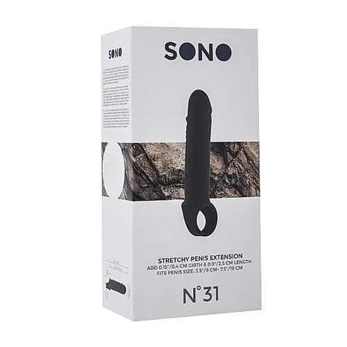 No.31 - Stretchy Penis Extension – насадка закрытого типа для небольшого увеличения на 2,5 см длины полового члена с кольцом для фиксации на мошонке. Она имеет реалистичную головку для оптимальной стимуляции. Насадка произведена из высококачественного мягкого материала - TPE (термопластичный эластомер).
