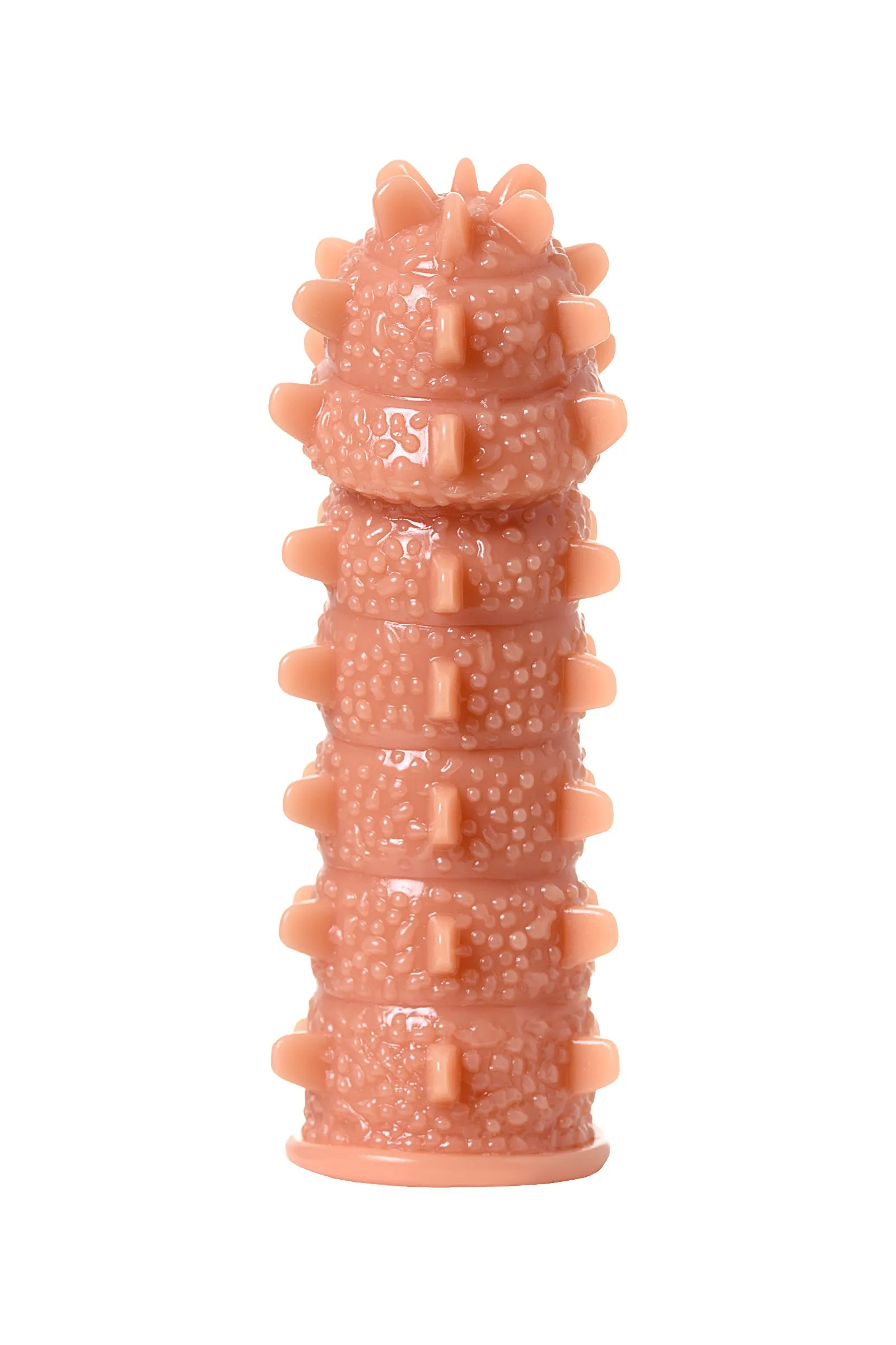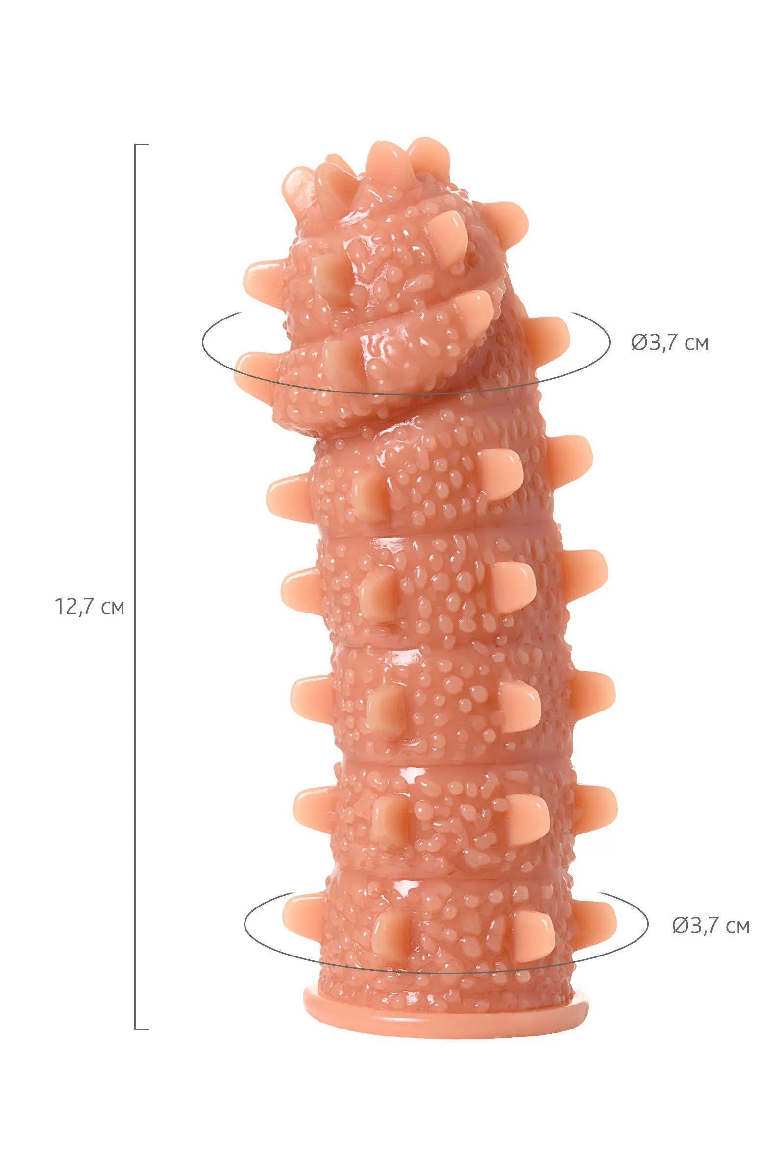 Увеличивающая насадка KOKOS Extreme Sleeve 04 с впечатляющей дополнительной стимуляцией решает сразу 3 задачи: дарит удовольствие обоим партнерам, позволяет экспериментировать с секс-игрушками и выводит интимную жизнь на более высокий уровень. Желанное разнообразие. Насадка придает члену внушительный объем и новую форму, поэтому как нельзя лучше подходит для сценариев «Секс с незнакомцем». При этом выразительный рельеф с выпуклыми точками и шипами привносит незабываемый эффект новизны в ощущения партнерши. Зашкаливающее удовольствие для двоих. В то время как женщина испытывает потрясающее чувство наполненности и получает интенсивную стимуляцию стенок влагалища, мужчина наслаждается более продолжительным половым актом и возбуждающими оргазмами партнерши. Яркие эксперименты. Киберкожа прекрасно передает всю мощность вибраций, поэтому насадку можно использовать не только с партнером, но и с любимым вибратором. Вы также оцените: как KOKOS Extreme Sleeve 04 превосходно тянется и легко надевается на член, обеспечивая при этом плотное и комфортное прилегание как KOKOS Extreme Sleeve 04 быстро принимает температуру тела и насколько он приятен на ощупь как KOKOS Extreme Sleeve 04 долго сохраняет первоначальный вид при соблюдении простых правил — использование лубрикантов на водной основе и хранение в индивидуальной упаковке в прохладном темном месте Увеличивающая насадка KOKOS Extreme Sleeve 04 подарит ощущения, которых у вас еще не было.