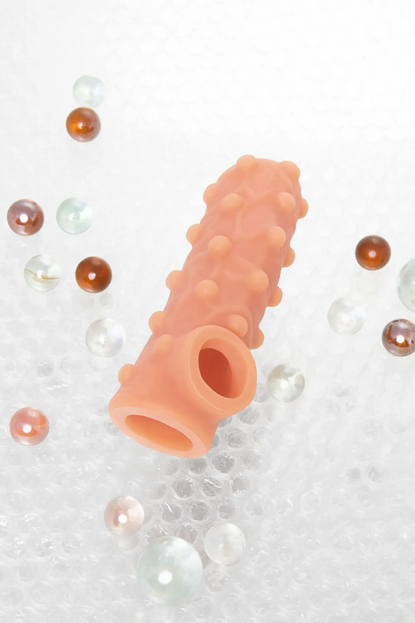 Открытая насадка с фантазийным рельефом от KOKOS предназначена воплотить фантазии о взаимном удовольствии. Реалистичная насадка на пенис - необходимый элемент для вашей сексуальной игры, если вы хотите максимально удовлетворить свою партнершу и сделать секс незабываемым. Откройте новые возможности: Увеличенный объем полового члена на 30% добавляет мужчине уверенности в своих сексуальных возможностях. Дополнительная стимуляция партнерши с помощью рельефа для яркого и насыщенного оргазма. Увеличение продолжительности полового акта у мужчины - задержка эякуляции, и наращивание темпа приближения оргазма у женщины. Насадка имеет форму “рукав”, плотно прилегает к пенису, создавая дополнительную толщину и оставляя головку открытой. Это позволяет сохранить чувствительность головки, задерживая эякуляцию. В основании есть отверстие для мошонки, с помощью которого вы надежно зафиксируете насадку на пенисе, не ограничиваясь в активных движениях. Насадка, за счет плотного облегания мошонки и головки, усиливает эрекцию. Выпуклый рельеф в виде многочисленных вен и внушительных шариков по всему стволу насадки очень хорошо стимулирует зону G, вход во влагалище и настойчиво ласкает чувствительные зоны. Вариативность стимуляции регулируется активным темпом движения вперед-назад и изменением угла проникновения. Дополнительный объем дарит то самое чувство наполненности, увеличивая поток возбуждения. Мужчина тоже будет ощущать стимуляцию за счет давления стенок влагалища на пенис. Супер эластичный материал быстро принимает температуру тела, отлично тянется, сохраняя при этом прочность. Нежное и мягкое покрытие такое же приятное на ощупь, как и человеческая кожа. Насадка сделана из высококачественного безвредного для человеческого организма материала, который прошел необходимые тестирования и сертификацию. Долговечность использования при соблюдении правил хранения и ухода за насадкой. Используйте с насадкой лубрикант только на водной основе. Длина: 10 см Диаметр: 3,5 см Размер: S Цвет: телесный Материал: TPE Страна бренда KOKOS: Корея