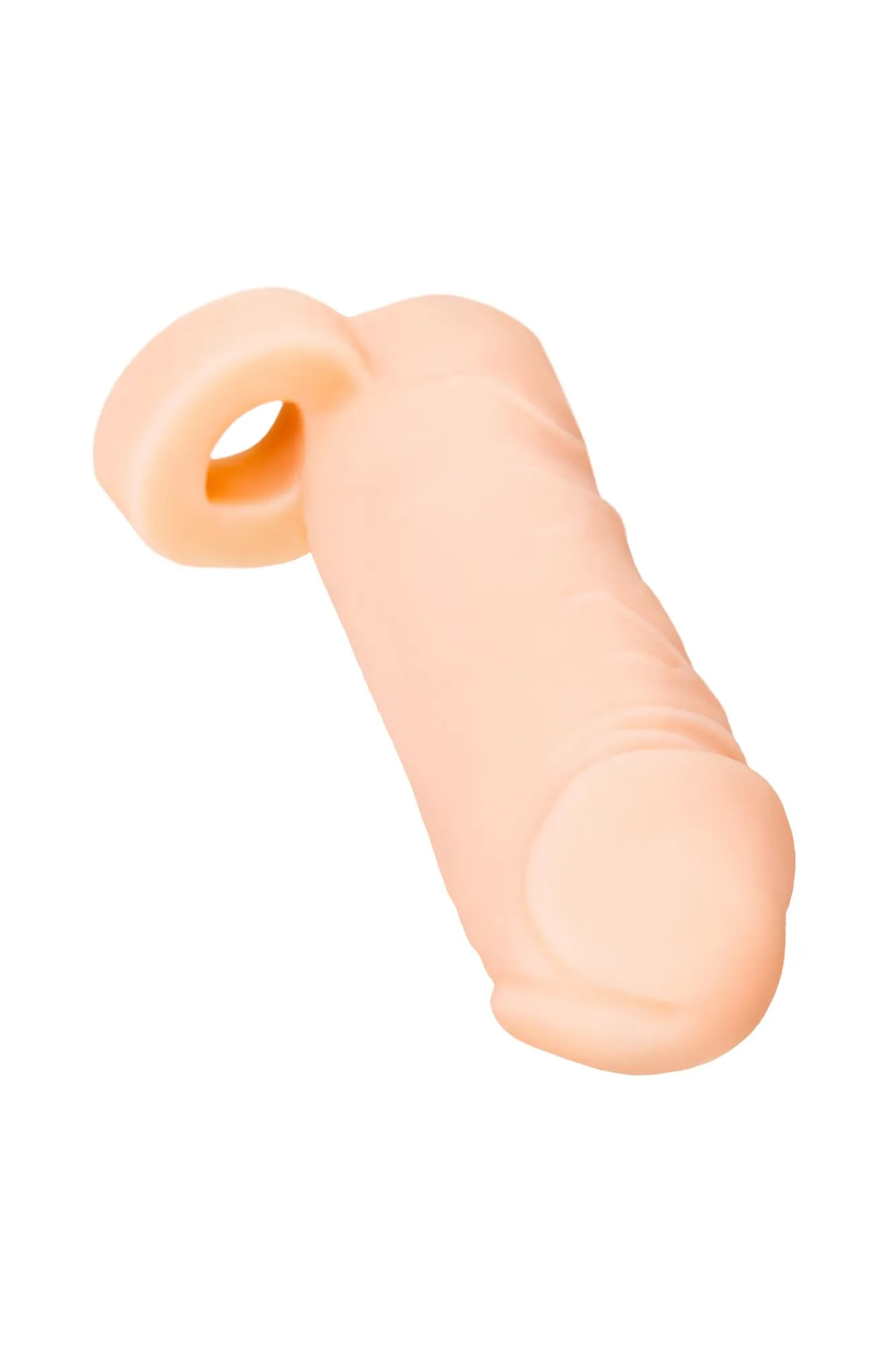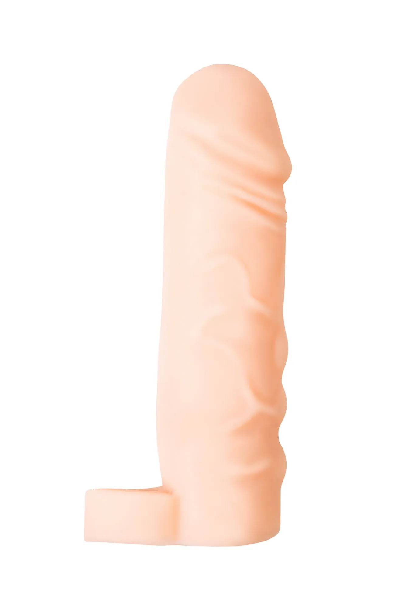 Эластичная насадка на пенис служит для увеличения размера полового члена в длину и продления полового акта. Удлиняющая насадка выполнена из нежного растяжимого материала, фиксируется с помощью кольца, которое надевается на мошонку. Объемная головка, выступающие складки и вены по всему стволу оказывают дополнительное воздействие на эрогенные зоны партнерши и ускоряют приближение оргазма. Рекомендуется использовать для проникновения лубриканты на водной основе. Насадка многоразовая, надевается на эрегированный пенис. С этой насадкой пенис увеличивается в объеме на 1,4 см, в длину на 3,5 см. Может содержать жирные следы.
