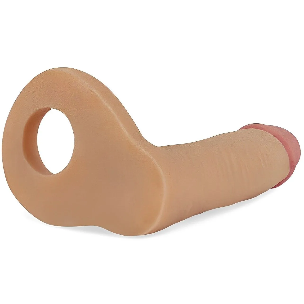 Реалистичная насадка для двойного проникновения. Насадка изготовлена из эластичного материала и кольцо на котором фиксируется насадка достаточно эластичная и подойдет разным размерам мужского члена. Сама насадка выполнена в реалистичном виде, с красивой головкой и профильным стволом.