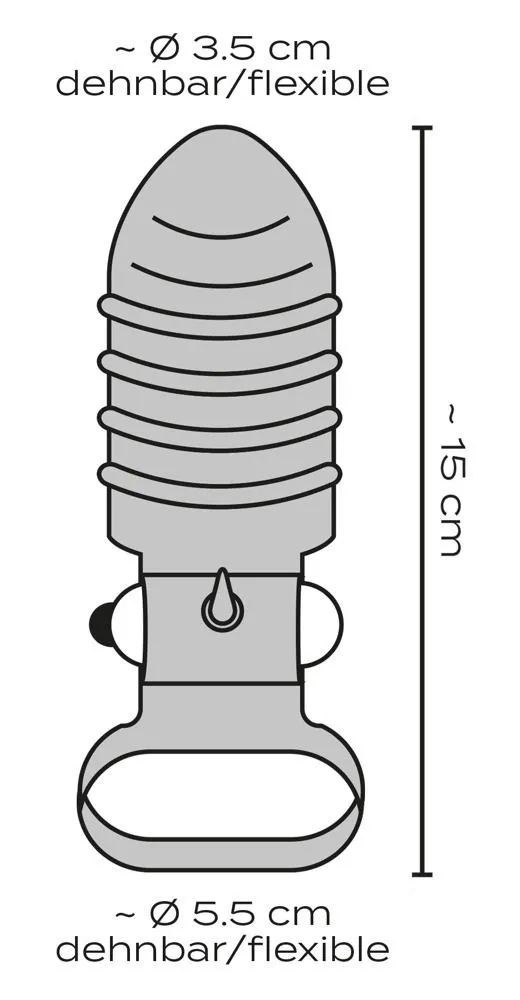 Насадка сделана из хорошо тянущегося и приятного на ощупь термопластичного эластомера. Материал вибропули - АБС пластик. На месте насадка будет удерживаться благодаря кольцу, надеваемому на мошонку. Диаметр кольца: 5.5 см.