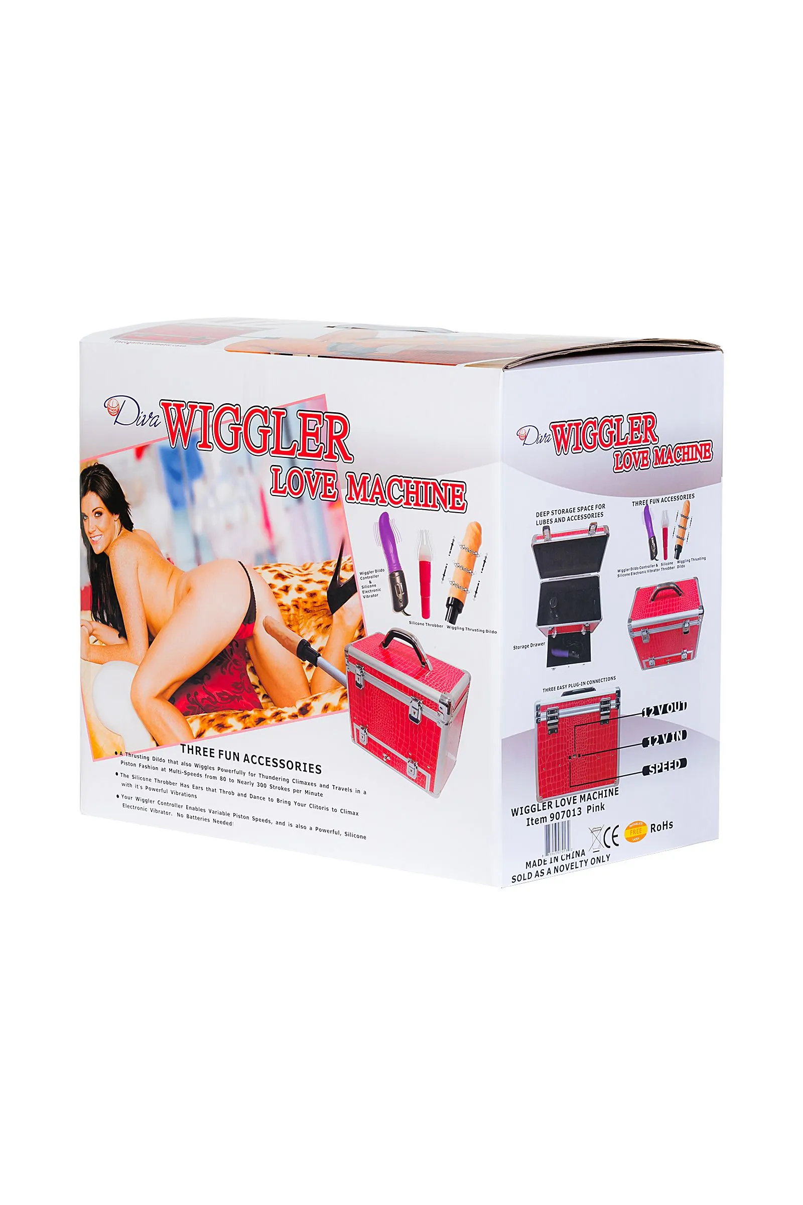 Этот чудо-чемоданчик Wiggler — настоящая находка не только для получения сексуального удовольствия, но и для сохранения интимных тайн. Эффективную стимуляцию эрогенных зон обеспечивают реалистичный фаллос-насадка с внутренним моторчиком и механизмом перекатывающихся шариков, клиторальный стимулятор и вибратор, подключаемый к секс-машине. А возможность спрятать аксессуары в кейс, внутри которого спрятана мощная секс-машина, помогает сберечь личную жизнь от посторонних взглядов. Итак, регулируемая частота фрикций достигает 300 в минуту, длина фрикций — 6 см. Такая мощность секс-машины гарантировано доводит до яркого оргазма. Благодаря Vac-U-Lock-адаптеру использовать можно и другие сменные фаллоимитаторы с креплением Vac-U-Lock.Также в комплекте насадка фаллоимитатор-реалистик из силикона марки FeelSoft, длина 18 см, диаметр 4,3 см и клиторальный стимулятор с мощной вибрацией. На секс-машину не устанавливается.Работает от одной батарейки формата АА (пальчиковая, в комплект не входит) Самые разнообразные интимные игры и ошеломляющий результат — этот секс-чемодан сделает всё на высшем уровне!