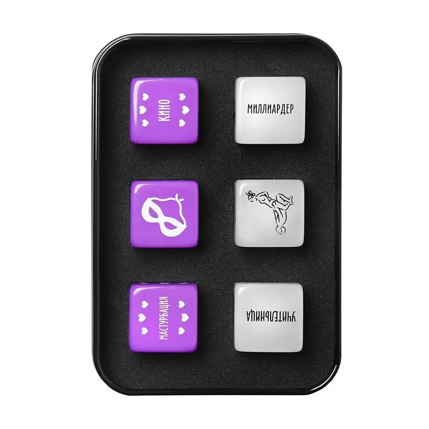 Представляем вам серию премиальных эротических игр в жестяных коробочках. Хотите воплотить свои самые смелые фантазии и желания? Тогда этот набор — то, что вам нужно. Внутри вас ждут пикантные атрибуты для секс-игр: 6 пластиковых кубиков.