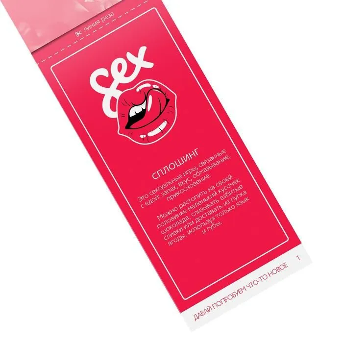 Как разнообразить сексуальную жизнь и добавить в неё ещё больше ярких эмоций? В этом наборе вас ждёт 12 способов вернуть в отношения страсть, азарт и испытать новые ощущения. Как использовать купоны? Просто разрезайте купоны по пунктирной линии, выбирайте то, чем хотите заняться сегодня, и воплощайте написанное в жизнь! Дарите друг другу любовь и наслаждение!
