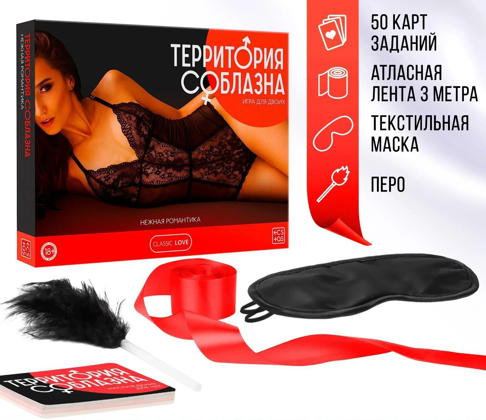 «Территория соблазна» – это серия эротических игр для двоих, в основе которой лежит акцент на раскрепощения. Разговоры, лёгкие прикосновения, пикантные фанты, прелюдия к сексу и постепенный переход к самому главному – сексу. Серия включает в себя наборы с аксессуарами, карточные игры, наборы кубиков и т.д.