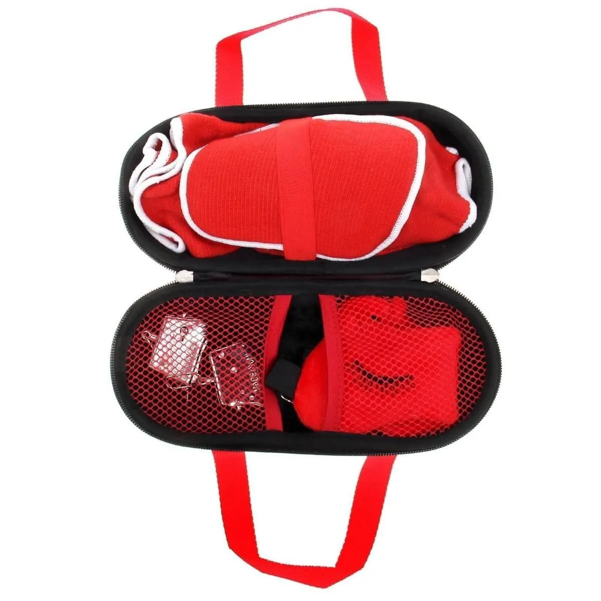 В наборе: наколенники, маска для сна, наручники, чехол.