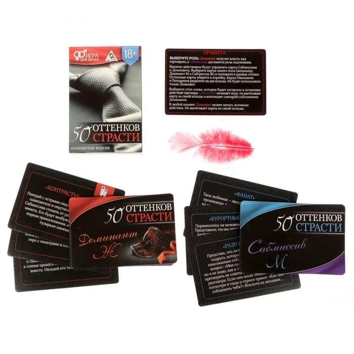 Выберите, кто будет исполнять роль Сабмиссива, а кто - Доминанта, и воплощайте свои самые сокровенные фантазии с помощью карт выбранных ролей!