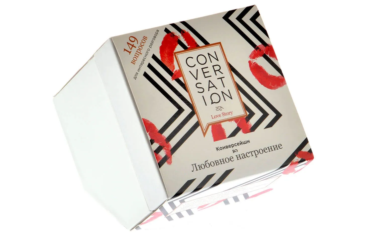 Игра "Конверсейшн. Любовное настроение" состоит из 149 карточек с вопросами для интересной беседы и поможет Вам лучше узнать своего друга или вторую половинку. Вам попадутся как простые вопросы, так и более сложные, ответ на которые нужно будет обдумать и задуматься об отношении к семье, детям, любви или деньгам. Поочередно вытягивая карточки и слушая ответы, Вы сможете
