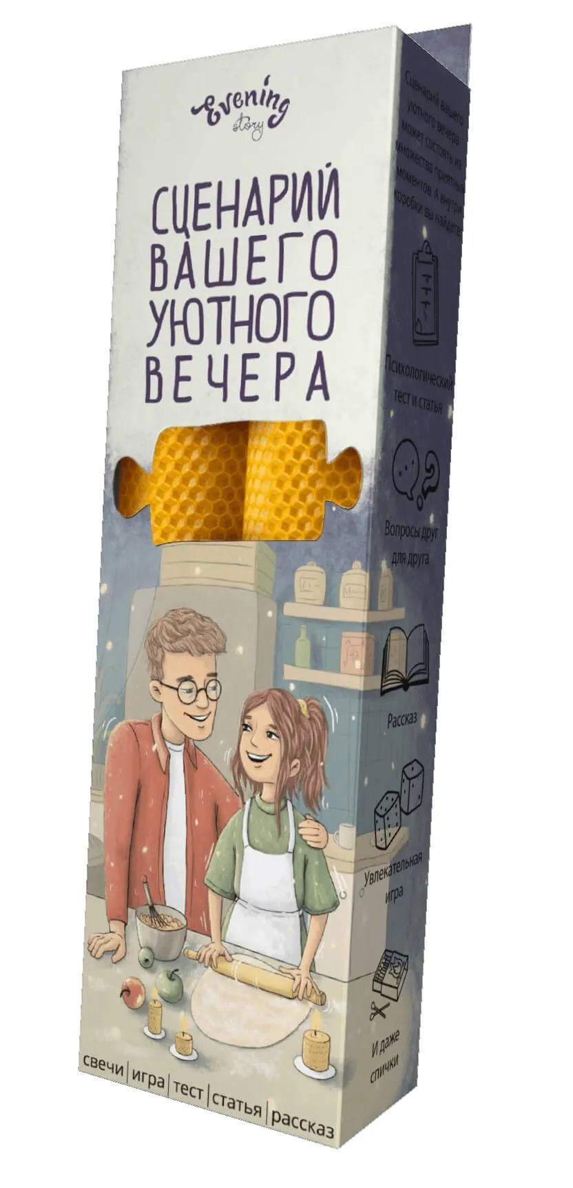 Набор "Сценарий вашего уютного вечера" от Evening Story это легкий способ для пары провести уникальное и запоминающееся свидание. Данный сценарий, за 2 часа, поможет вам сблизится и лучше узнать друг друга. А так же найти в партнёре что-то новое, даже если вам кажется, что вы уже знаете абсолютно всё.