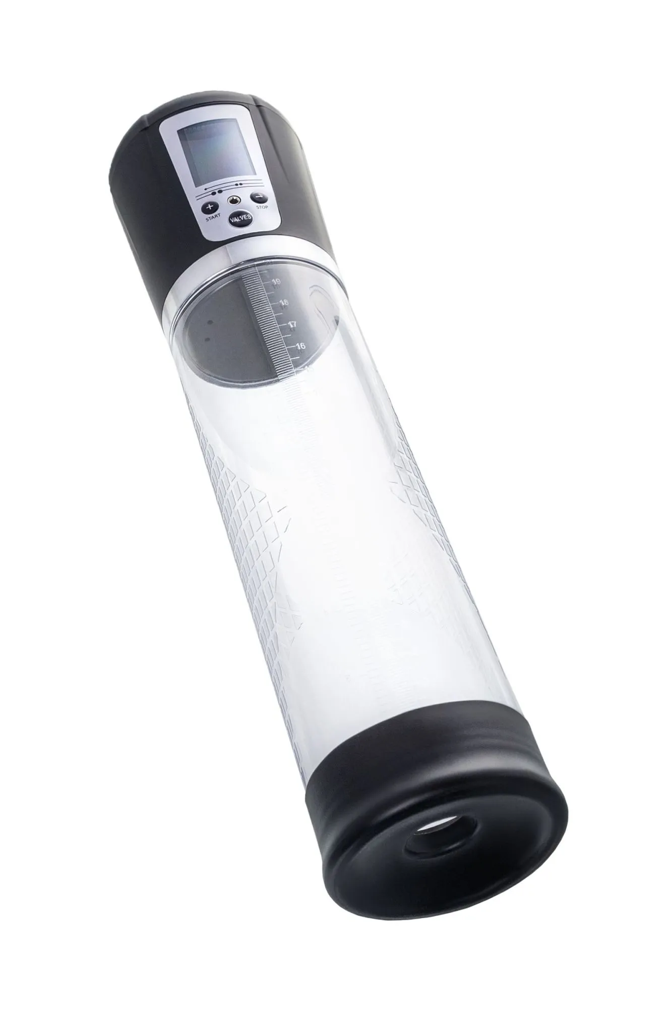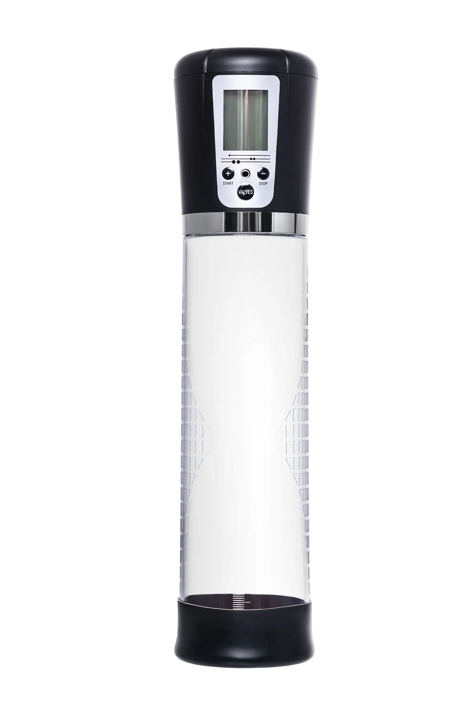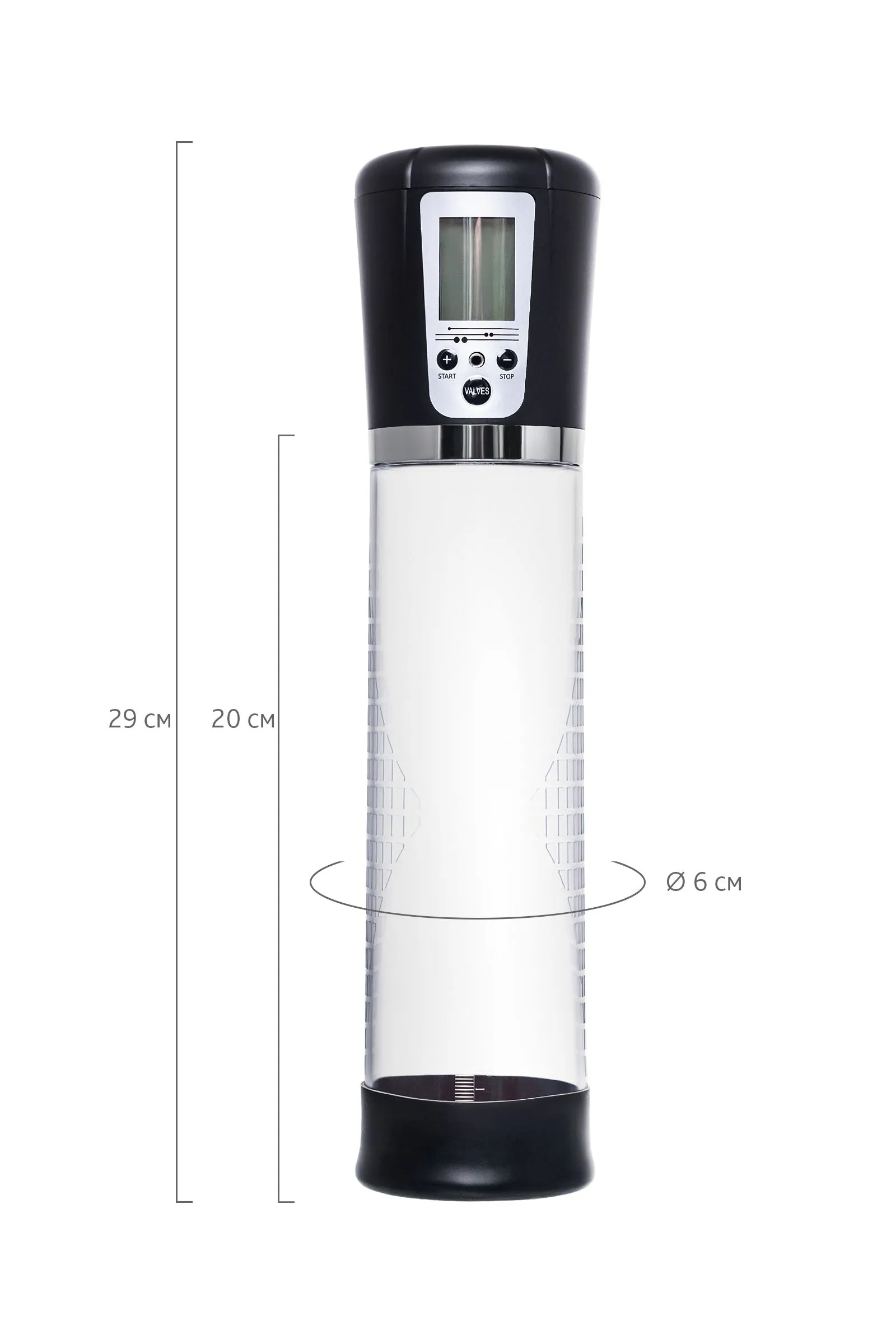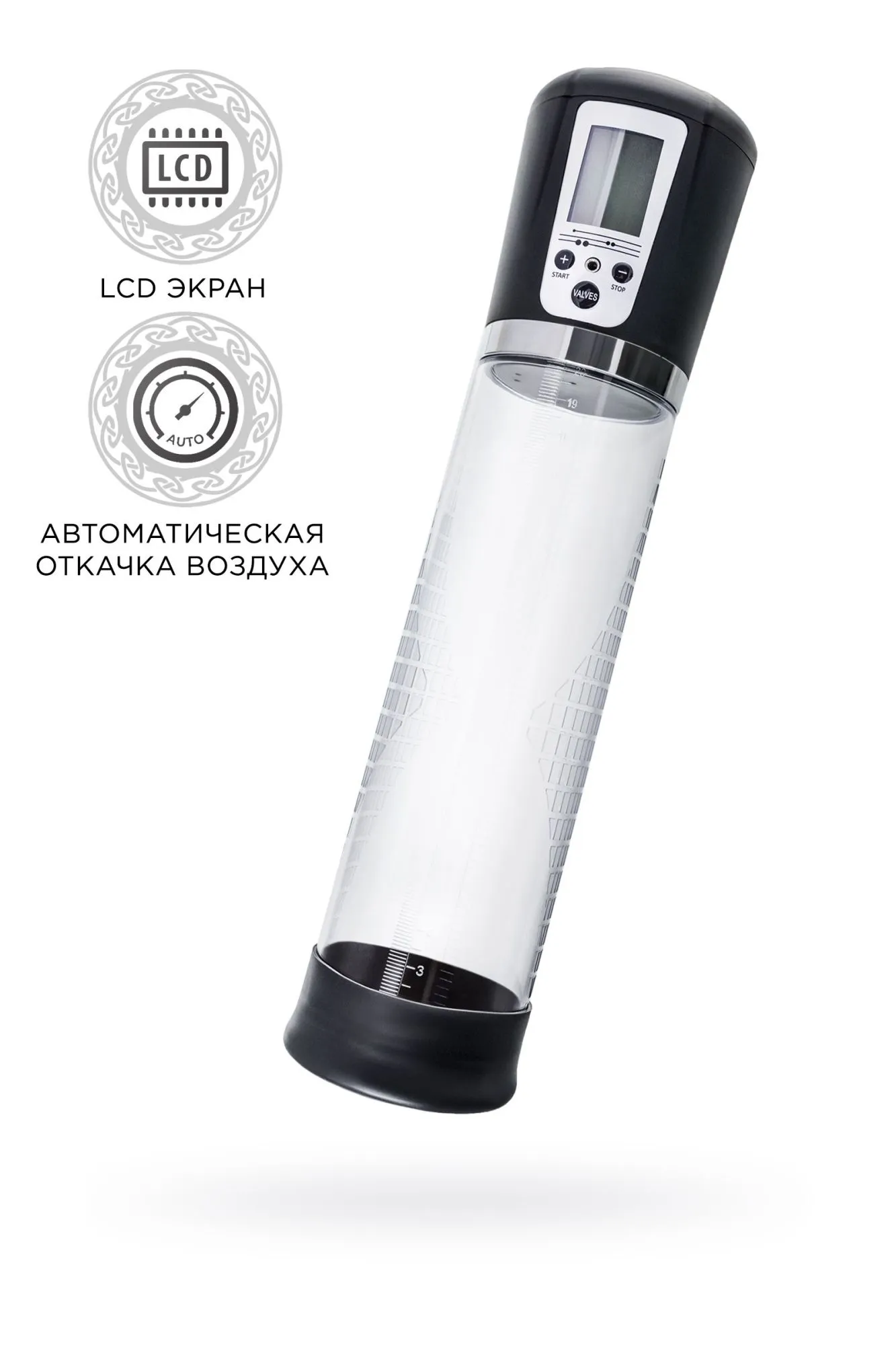 Автоматическая помпа на аккумуляторе Alrik от Sexus® Men – для самых требовательных мужчин, которые стремятся к легендарной мужской силе. Сексуальное могущество для мужчины – не только крепкая и надежная эрекция, но и внушительный размер орудия. С автоматической помпой Alrik серии Sexus® Men Expert возможно достичь впечатляющих результатов в области увеличения размеров пениса, занимаясь пенбилдингом по эффективной программе тренировок. Для тренировки, а также чтобы подготовить себя к длительному и яркому сексу, вставьте свой пенис в колбу и откачайте воздух. С помпой Alrik не нужно прилагать усилий для создания вакуума, она сделает это за вас комфортно и безопасно. Помпа имеет 4 уровня давления, которые регулируются кнопками +/ - на колбе, сброс давления – кнопкой Valves. На LCD экране помпы Alrik можно видеть время помпирования, давление и уровень, на котором в данный момент работает умное устройство. После сброса давления помпа сама откачает воздух до заданного режима. Благодаря отрицательному давлению увеличивается приток крови к половому члену. Прозрачный ABS-пластик позволяет наблюдать как пенис набирает силу и увеличивается в размере. А измерительная шкала помогает отслеживать результаты прямо в процессе. Для достижения ощутимых результатов рекомендуются систематические занятия по программе эффективного тренинга, которая входит в комплект. Регулярное использование вакуумной помпы Alrik от Sexus® Men позволяет: последовательно увеличить длину и диаметр полового члена, делая его более внушительным и прокаченным сделать эрекцию более стабильной, крепкой и продолжительной повысить сексуальную выносливость и половое влечение поднять уверенность в своих возможностях и совершать новые сексуальные подвиги понизить вероятность образований аномальных фиброзных тканей Помпа Alrik комплектуется программой тренировок и USB-проводом для зарядки. Порядок работы помпы: Включение: коротким нажатием на кнопку «+» помпа включается на нулевом уровне, загорается LCD экран. Повышение уровней: коротким нажатием на кнопку «+» последовательно повышайте уровни откачки воздуха. На экране в режиме реального времени отображается давление в колбе в Mbar. Помпа останавливается на заданном уровне и поддерживает указанный индикатором уровень давления. Если вы сбросите давление кнопкой «VALVES», помпа автоматически откачает воздух до заданного уровня. Понижение уровней: сбросьте давление кнопкой «VALVES», а затем коротким нажатием на кнопку «-» последовательно понижайте уровни давления в помпе. На экране в режиме реального времени отображается давление в колбе в Mbar. Помпа останавливается на заданном уровне и поддерживает указанный индикатором уровень давления. Сброс давления: кнопкой «VALVES» помпа сбрасывает давление в колбе. Если вы не понизили уровень, то помпа автоматически восстановит его до указанного красным индикатором. Выключение: последовательно понижайте уровни кнопкой «-» следующее нажатие после уровня 0 Kpa выключит помпу. Перед тем, как извлечь член из помпы, сбросьте давление кнопкой «VALVES». LCD экран показывает уровень заряда аккумулятора, режим давления, текущее давление в Mbar, время тренировки.