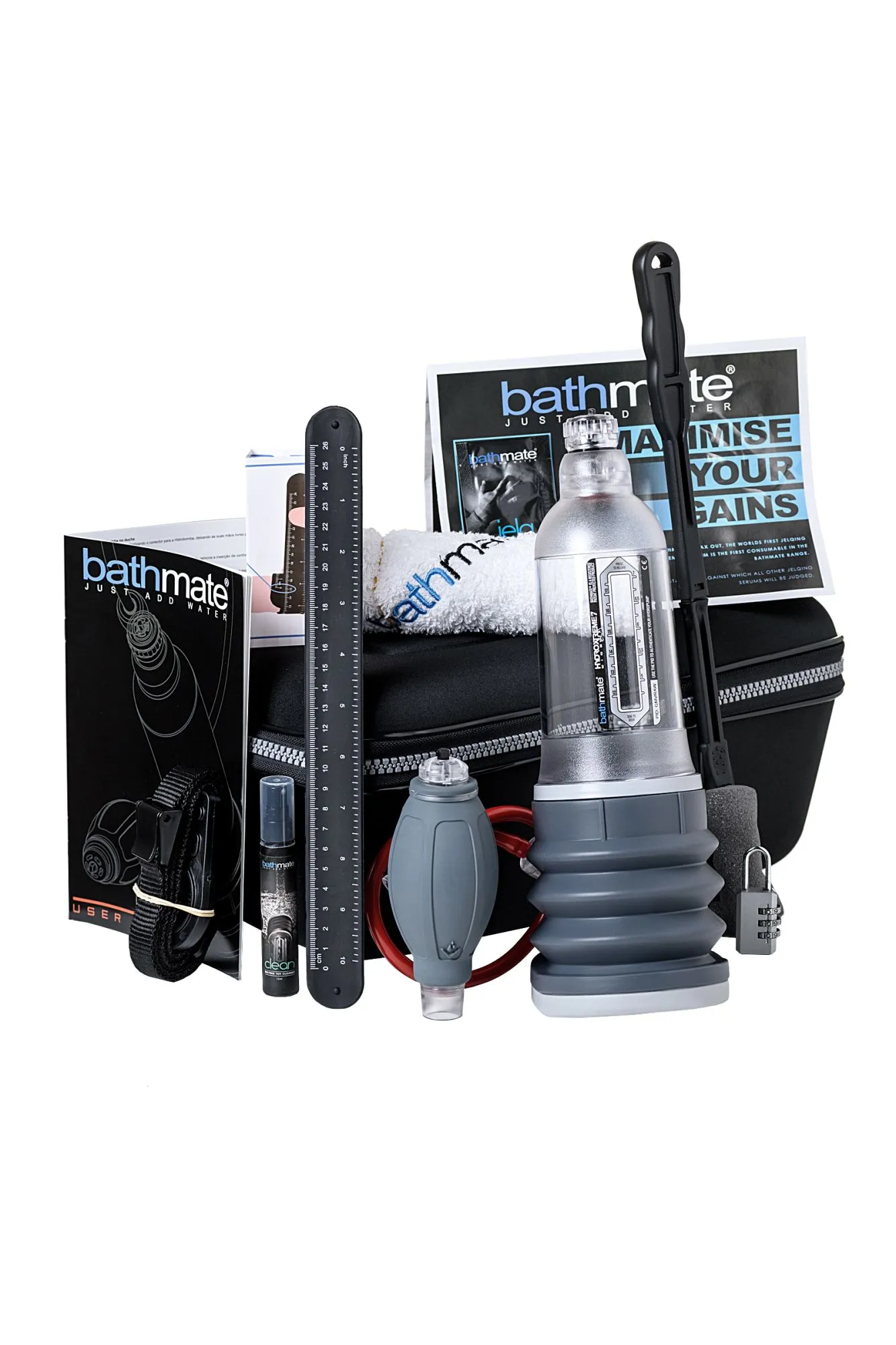 Суперновинка в серии гидропомп Bathmate! • Мощнее на 35% больше, чем Геркулес, благодаря своей уникальной, разработанной насосной системы. • Шире, чем Hydromax X20, X30, X40. • Для длины от 12,5 до 17,5 см. • Для ширины до 5,5 см (как X40). • Уплотнительное кольцо выполнено в виде удлиненной вставки. • Клапан выпуска воды фиксируется крайними положениями. Колба разворачивается на 360 градусов – Вы легко увидите полную визуальную картину всего происходящего, а наклонная опция изменения угла необходима для оптимальной эффективности при использовании в ванне или под душем. Новый клапан позволяет пользоваться помпой одной рукой, делая использование намного проще для вас. Зафиксируйте с помощью мерной шкалы отметку "до" и "после" и гордитесь полученным результатом! Внимание! Данная помпа подойдет для тех, у кого длина пениса в эрегированном состоянии не более 180 мм.