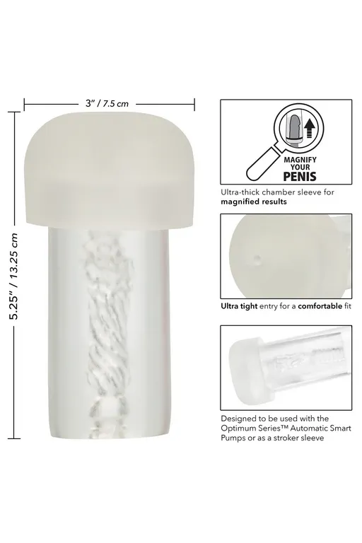 Optimum Series – специализированный вставка для помпы с эффектом лупы, который позволяет наблюдать за эффектом тренировки полового органа.