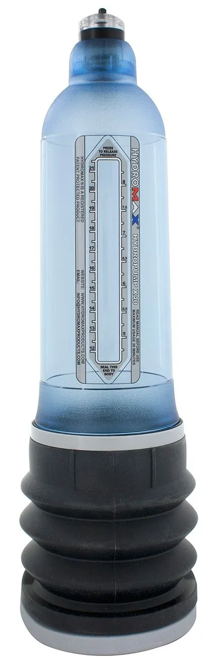 Гидропомпа Hydromax X40 подходит при толщине пениса в эрегированном состоянии до 5,6 см и длине до 21 см. Максимальная сила давления внутри помпы - 0,55 бар.