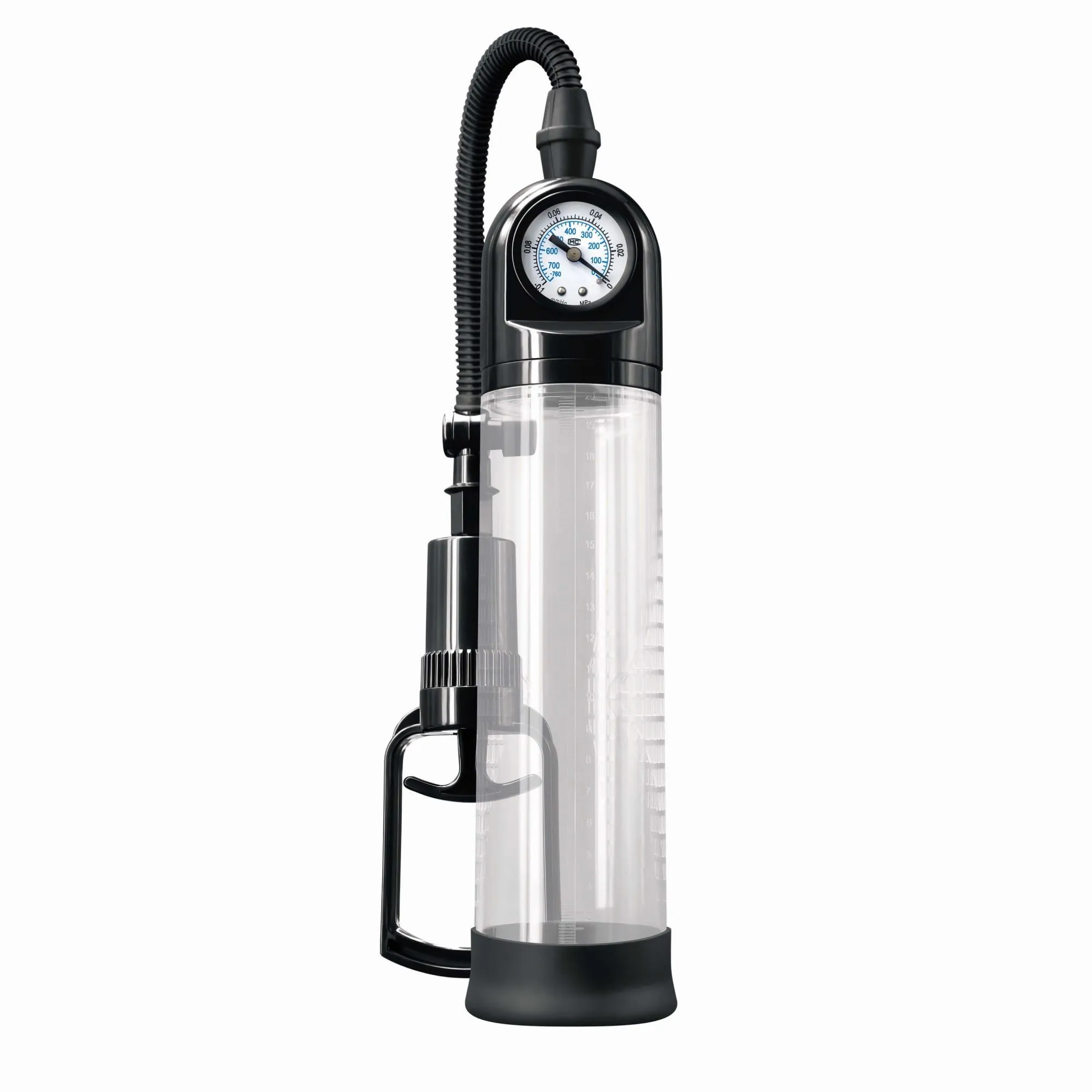 Вакуумная помпа Renegade PSI Pump от бренда NS Novelties состоит из акрилового цилиндра со встроенным манометром, силиконового шланга, удобной ручки и уплотнительного кольца из ПВХ. Регулярные упражнения с помпой увеличат член, а использование перед интимной близостью помогут быстрее достигнуть возбужденея. Благодаря манометру будет легче отслеживать уровень давления, а шкала измерений на цилиндре позволит отслеживать свой прогресс. На шланге есть клапан для быстрого сброса давления.