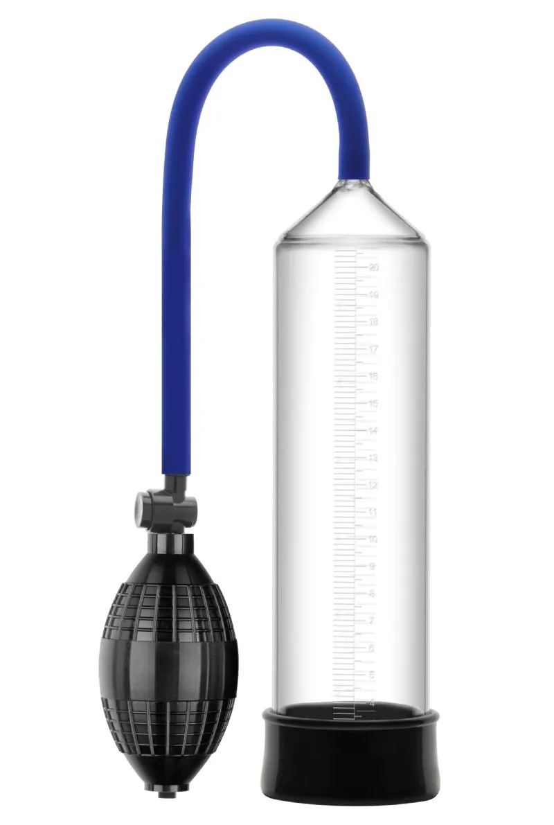 Ручная вакуумная помпа, состоящая из колбы с уплотнителем и насоса в виде груши. Небольшой мячик удобно располагается в руке. Большее количество сжиманий делают вакуум плотнее. Применение Удобная в использовании помпа предназначена для лучшей эрекции и максимального удовольствия. Благодаря ей вокруг пениса возникает отрицательное давление, стимулируя приток крови, делая эрекцию более твердой, и со временем способствует увеличению длины и обхвата. Большее количество сжиманий делают вакуум плотнее. Прозрачный вакуумный цилиндр и измерительная шкала дает возможность наблюдать за усилением кровотока и ростом. В комплекте: колба, груша, уплотнительная насадка.