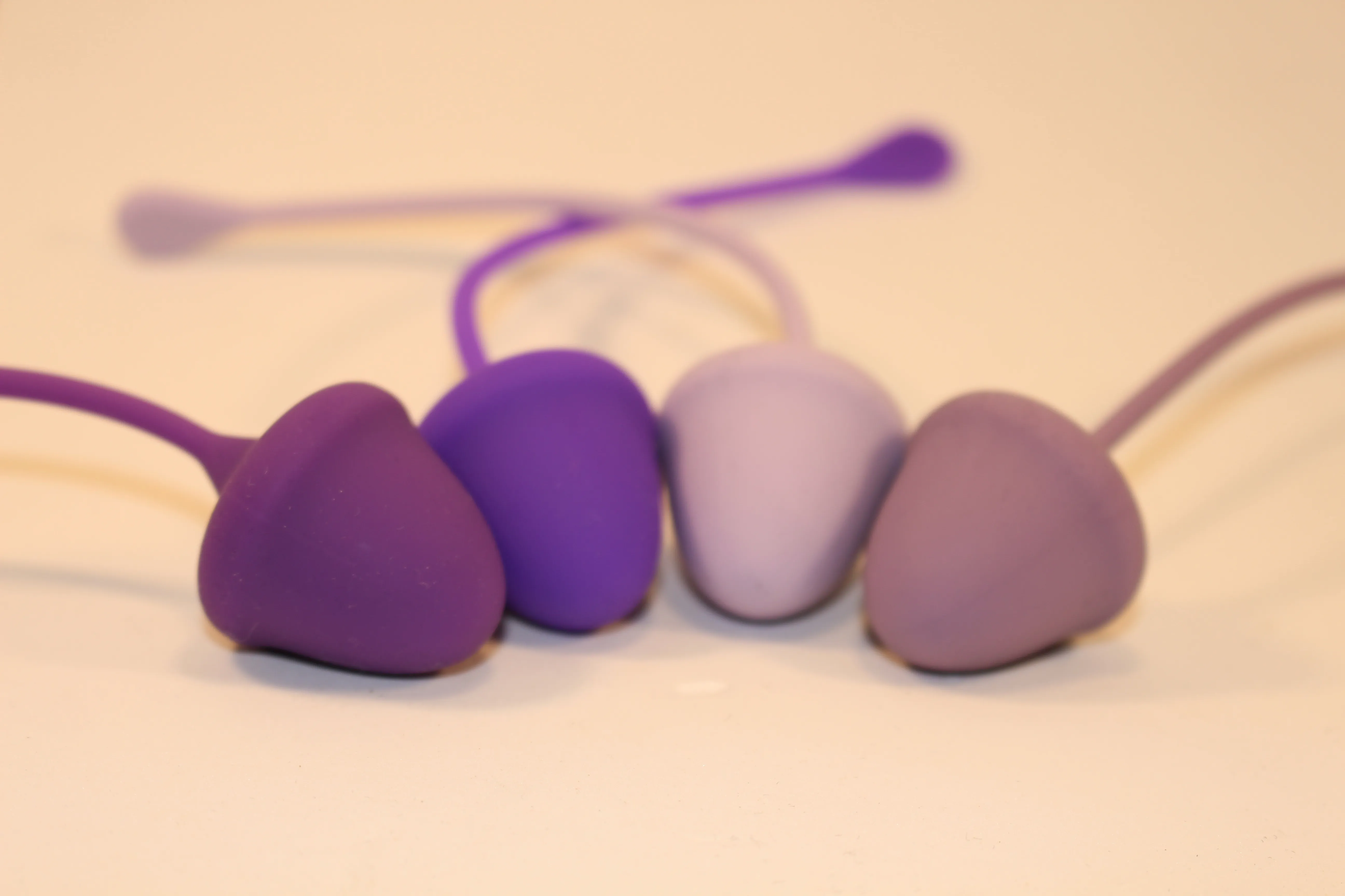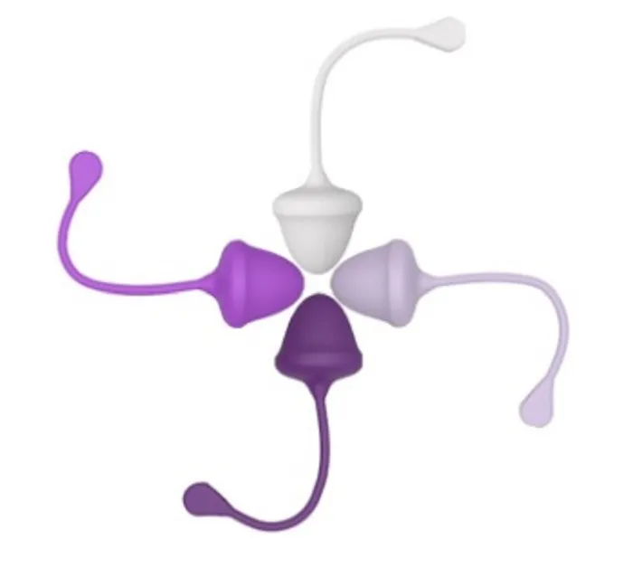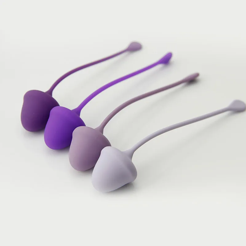 Вагинальные шарики со смещенным центром тяжести для тренировки интимных мышц и массажным эффектом (в упаковке 4шт разных цветов). Вагинальные шарики используют для сексуального удовольствия и тренировки мышц. Индивидуальное крепление позволяет легко вынимать шарик. Характеристики: материал – силикон, длина – 14,5 см, диаметр – 2,8 см, 10+15+20+25 гр