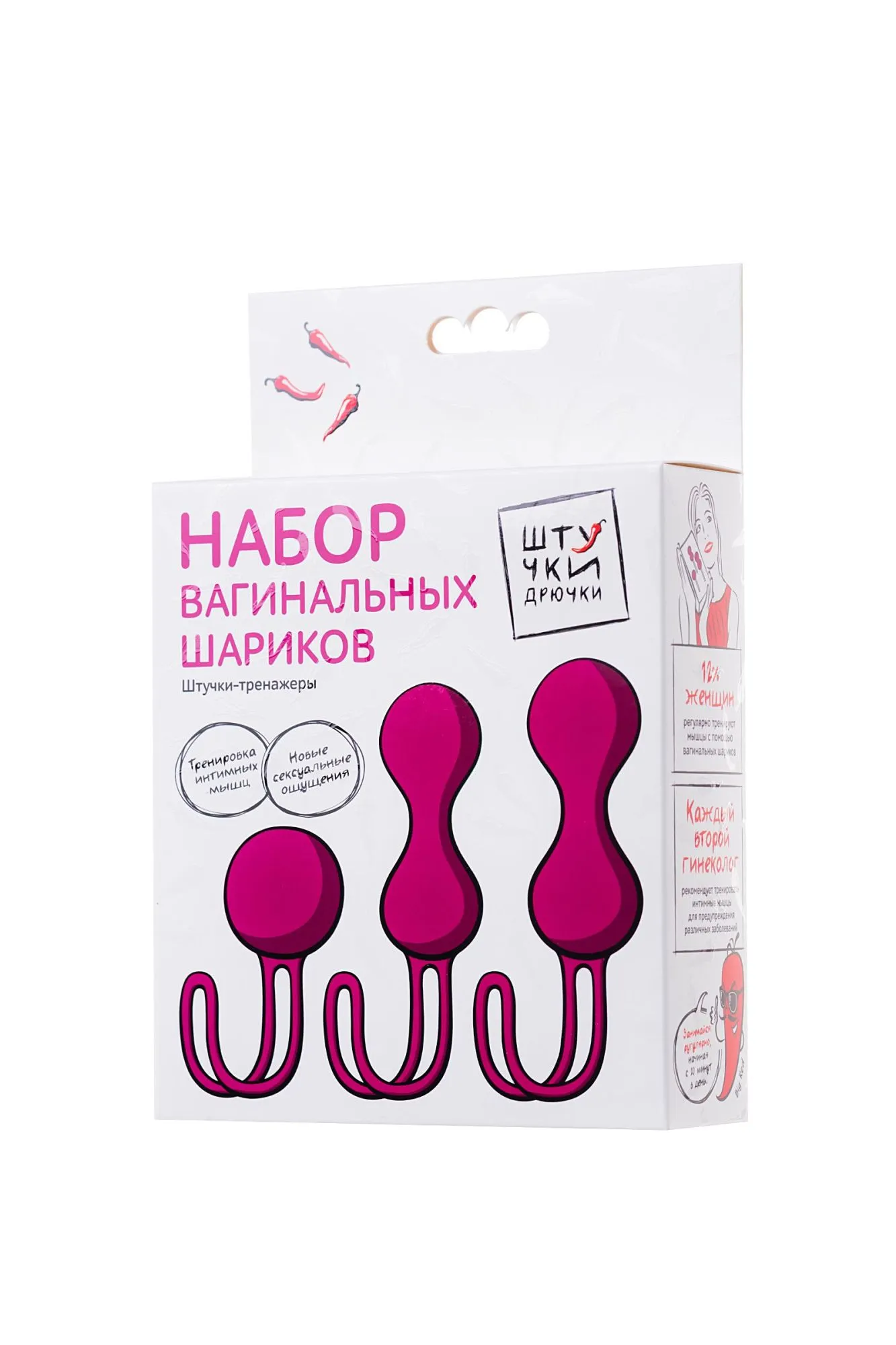 Набор вагинальных шариков "Штучки-Дрючки" со смещенным центром тяжести выполнен из нетоксичного и гипоаллергенного 100% силикона высокого качества. На конце есть петля, позволяющая легко вводить и извлекать игрушку. Водонепроницаемы и просты в уходе. Идеальный способ попрактиковать упражнения Кегеля. Благодаря шарикам разной тяжести вы можете начать тренировки, даже если никогда этого не делали, постепенно увеличивая нагрузку. Вагинальные шарики "Штучки-Дрючки" укрепляют ЛК-мышцы, улучшают тонус и упругость мышц влагалища, а также помогают увеличить продолжительность и интенсивность оргазмов. Просто нанесите ваш любимый лубрикант и вставьте шарики. Они абсолютно бесшумны, а петлю для извлечения легко спрятать в нижнем белье. Рекомендуется использовать игрушку не более 2 часов, начиная с 20-30 минут ежедневно. Размеры: длина - 16,5 диаметр - 3,2; длина - 15,5 диаметр - 3; длина - 12 диаметр - 3,6