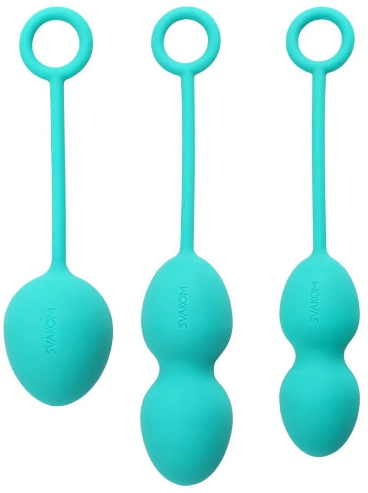Вагинальные шарики Svakom Nova Ball разработаны для упражнений Кегеля. Набор включает в себя три различных шарика с разными размерами и разным весом. Каждый шарик сделан из 100% медицинского силикона и оснащен специальным колечком для легкого извлечения. Внутри каждого шарика есть подвижный металлический шарик, который будет создавать вибрации при каждом Вашем движении. Силиконовые шарики будут выскальзывать, однако под воздействием этих небольших вибраций Ваши мышцы будут сокращаться и препятствовать их выпадению. Дизайн шариков учитывает анатомию женского тела, что делает этот набор очень комфортными и удобными в использовании.
