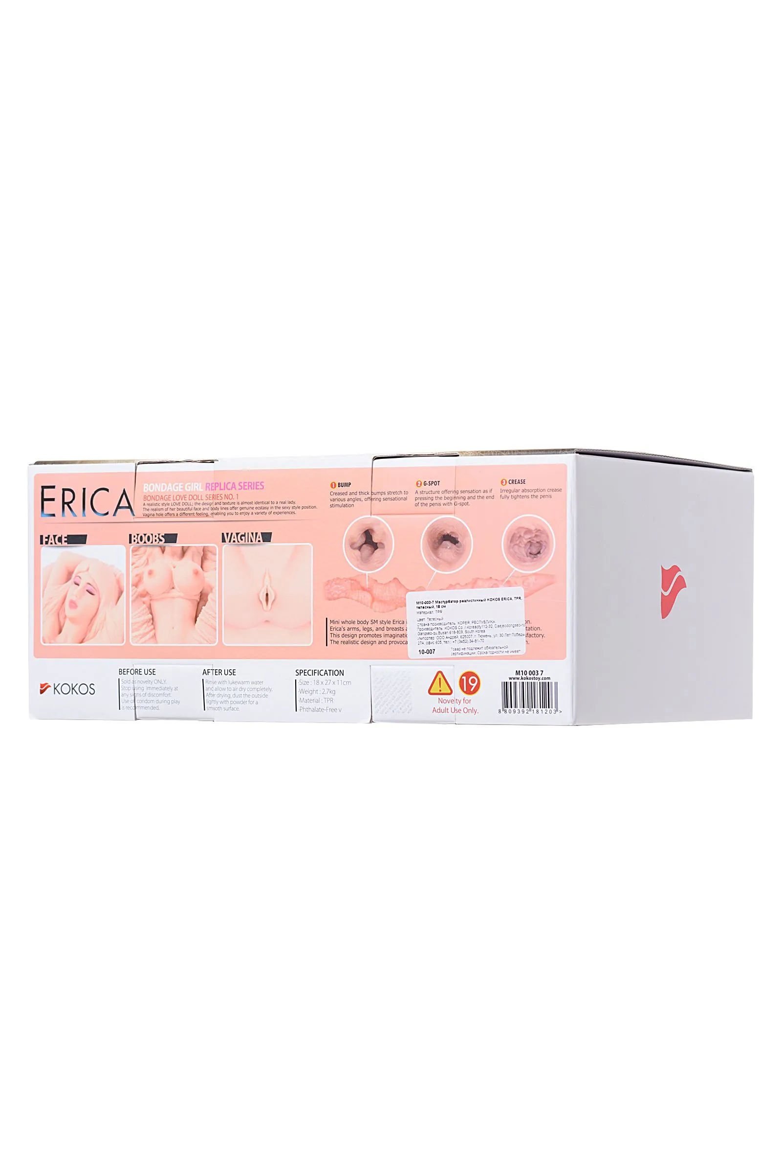Мини-кукла KOKOS Erica — настоящая находка для эстетов. Ее прекрасное тело, туго связанное веревками, дает мужчине почувствовать свою власть и превратить будничную мастурбацию в театрально-эротическое представление. Бархатистая киберкожа придает процессу захватывающую естественность, а беспомощная поза пробуждает самые смелые фантазии. Узкий вагинальный канал плотно обхватывает член и создает легкий эффект посасывания во время игры. А активный рельеф, повторяющий анатомическое строение женщины, динамично стимулирует все нервные окончания и приводит к быстрой сексуальной разрядке. KOKOS Erica — the show must go on! • Безопасный для здоровья материал Закрытый тоннель для создания эффекта оральных ласк Совместим со смазками на водной основе