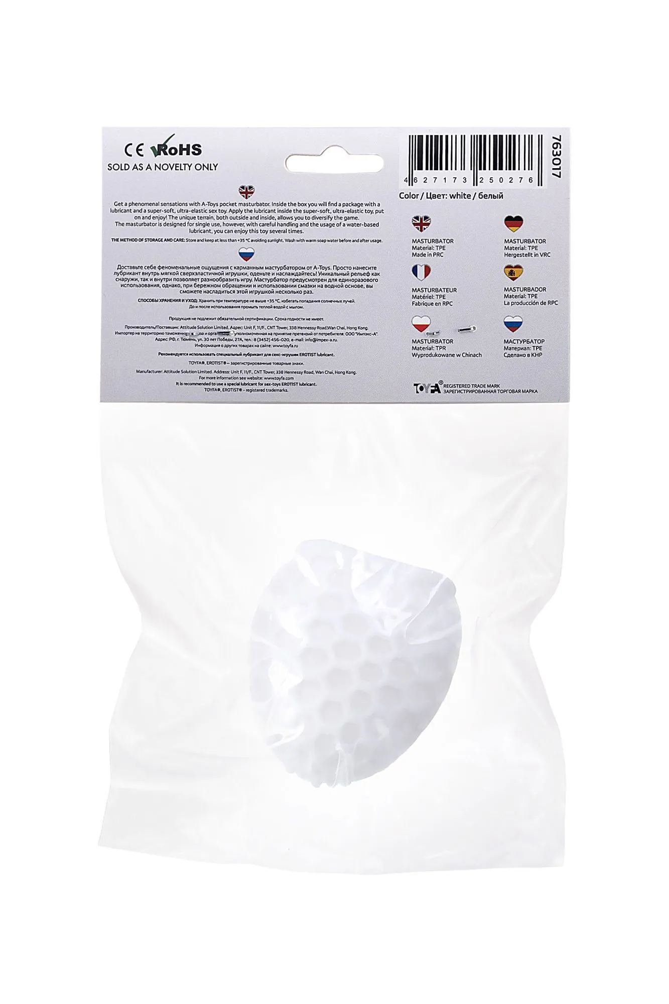 Доставьте себе феноменальные ощущения с карманным мастурбатором от A-Toys. Просто нанесите лубрикант внутрь мягкой сверхэластичной игрушки, наденьте и наслаждайтесь! Уникальный рельеф как снаружи, так и внутри позволяет разнообразить игру. Мастурбатор предусмотрен для единоразового использования, однако, при бережном обращении и использовании смазки на водной основе, вы сможете насладиться этой игрушкой несколько раз. Общая длина: 6 см Диаметр: 2,7 см Разный рельеф с обеих сторон