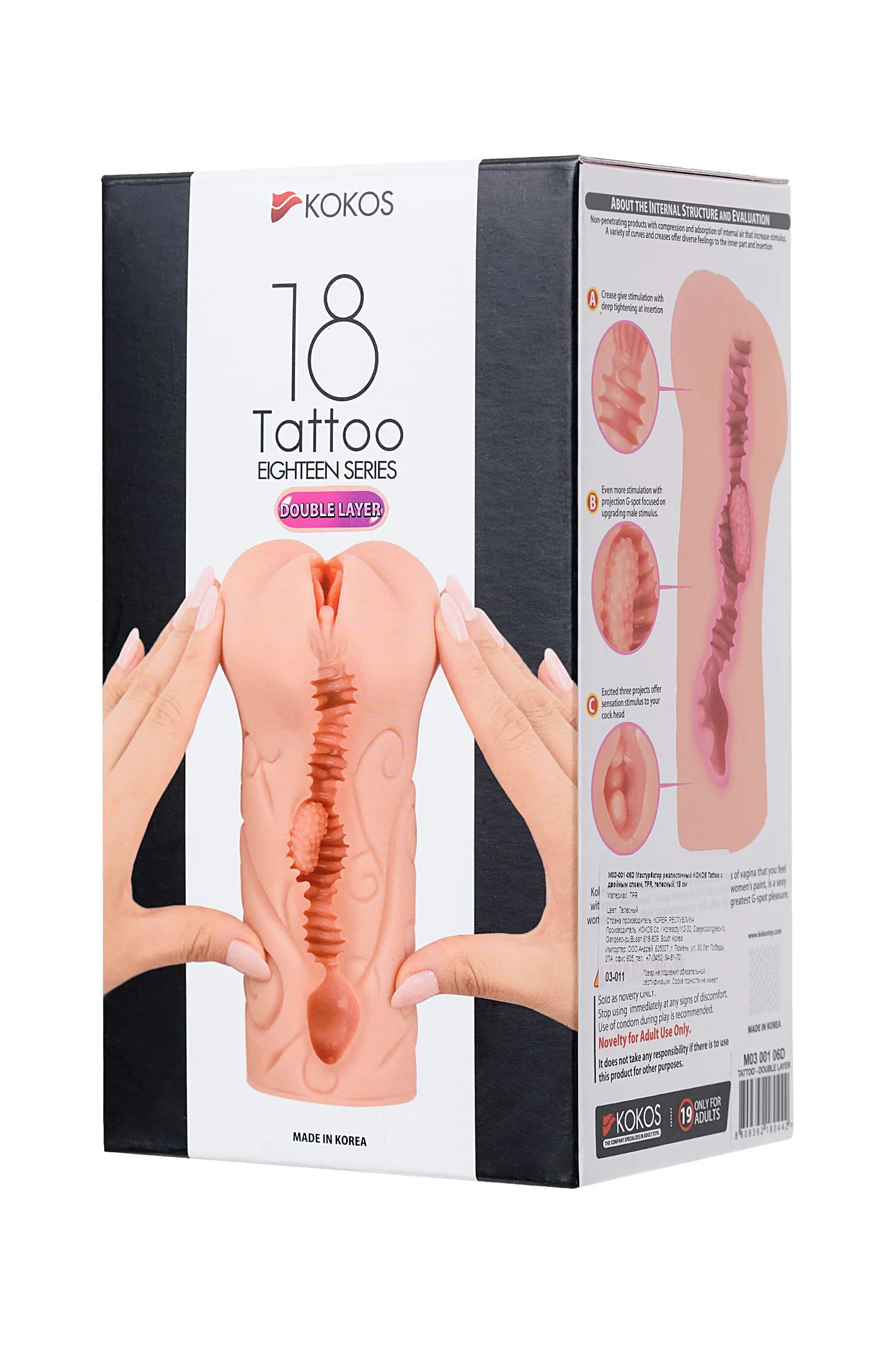 Девушки с татуировками обладают особенным сексуальным темпераментом, и дизайнеры KOKOS сумели в полной мере передать его в мастурбаторе KOKOS Tattoo: игривый рисунок и набухшие от возбуждения половые губы включают фантазию на максимум и быстро погружают вас в мир необузданных желаний. Внешняя часть игрушки выполнена из нежнейшей киберкожи, что дарит прикосновениям высшую степень реалистичности. Внутренний тоннель изготовлен из более упругого материала — это позволяет прочувствовать каждый выступ рельефа и получить бескрайнее удовольствие от стимуляции. Объемная точка G в центре вагинального канала активно массирует член и приводит в восторг все эрогенные зоны. Многочисленные складки плотно обхватывают ствол пениса и создают необычный посасывающий эффект во время фрикций. Три бусины в конце туннеля балуют головку при глубоком проникновении и доводят до ошеломляющего оргазма. Попробуйте все это, испытайте максимальный накал. Оргазмы, полученные с KOKOS Tattoo, как яркие татуировки — навсегда остаются в памяти. 2 слоя материала: мягкий снаружи и упругий внутри • Закрытый тоннель для создания эффекта оральных ласк Совместим со смазками на водной основе