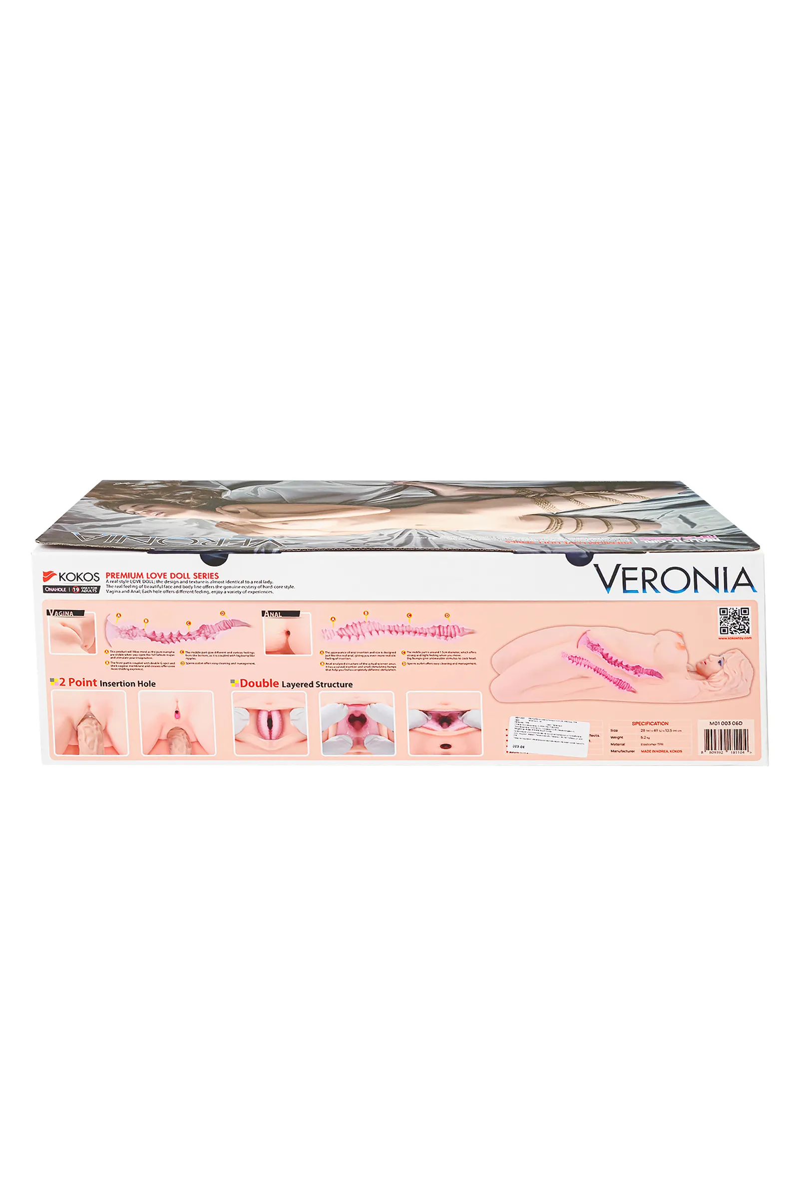 Реалистичный мастурбатор премиум-класса от знаменитого корейского бренда KOKOS кукла Veronia из серии Love Doll – это воплощение реализма, где прекрасное лицо и изысканные формы создают подлинный экстаз. Вагинальное и анальное отверстия дарят разнообразные ощущения, а поза куклы раскрывает безграничные возможности для фантазии. Загадочные глаза и великолепная грудь с приглашающими сосками добавляют пикантности интимному контакту. Ощутите магию двойного слоя – внешний мягкий и нежный, внутренний плотный и упругий – создают неповторимые впечатления. 3D-рельеф внутри мастурбатора стимулирует каждое движение пениса, даря невероятные ощущения. Яркий внутренний слой помогает воображению погрузиться в настоящий контакт с Veronia. Внутренние каналы обеспечивают особо тесный контакт, передавая чувствительность к каждой детали. Уникальный материал обладает эластичностью, превосходящей природную мягкость. Вагинальный канал активно стимулирует пенис за счет ярко-выраженной зоны G, выпуклых изгибов и внутренних складочек. Анальный канал повторяет естественную структуру и дарит ощущения реального проникновения и особенно тесного контакта благодаря внутреннему диаметру в 1,5 см. Оба канала имеют сквозные отверстия для простоты ухода, а также присоединения вибропуль и вибромассажеров (не входит в комплект). С их помощью можно создавать мощную герметичность и вакуумное ощущение, усиливающее удовольствие. Мастурбатор легко поддается вашим предпочтениям – регулируйте степень удовольствия, достигая финала по своему вкусу. Его гибкий корпус обеспечивает комфорт в каждом движении. Уникальный запатентованный материал, как и все высококачественные материалы линейки KOKOS премиум, безопасен, гигиеничен и не оказывает токсичного воздействия на организм человека. Рекомендуется очищать игрушку теплой водой, либо средством для очистки секс-игрушек, и использовать специальную пудру, которая защищает нежную поверхность и продлевает срок службы. Сквозные каналы облегчают очистку и уход. Рекомендуется использовать с лубрикантами на водной основе. Кукла Veronia - это 50 см реального наслаждения, предназначенного для каждого мужчины. Погрузитесь в мир эротических фантазий с KOKOS. Материал: TPE Форма: реалистичный полуторс Длина: 50 см, Ширина: 27 см Высота: 14 см Вес: 5,5 кг Цвет: телесный Страна бренда KOKOS: Корея
