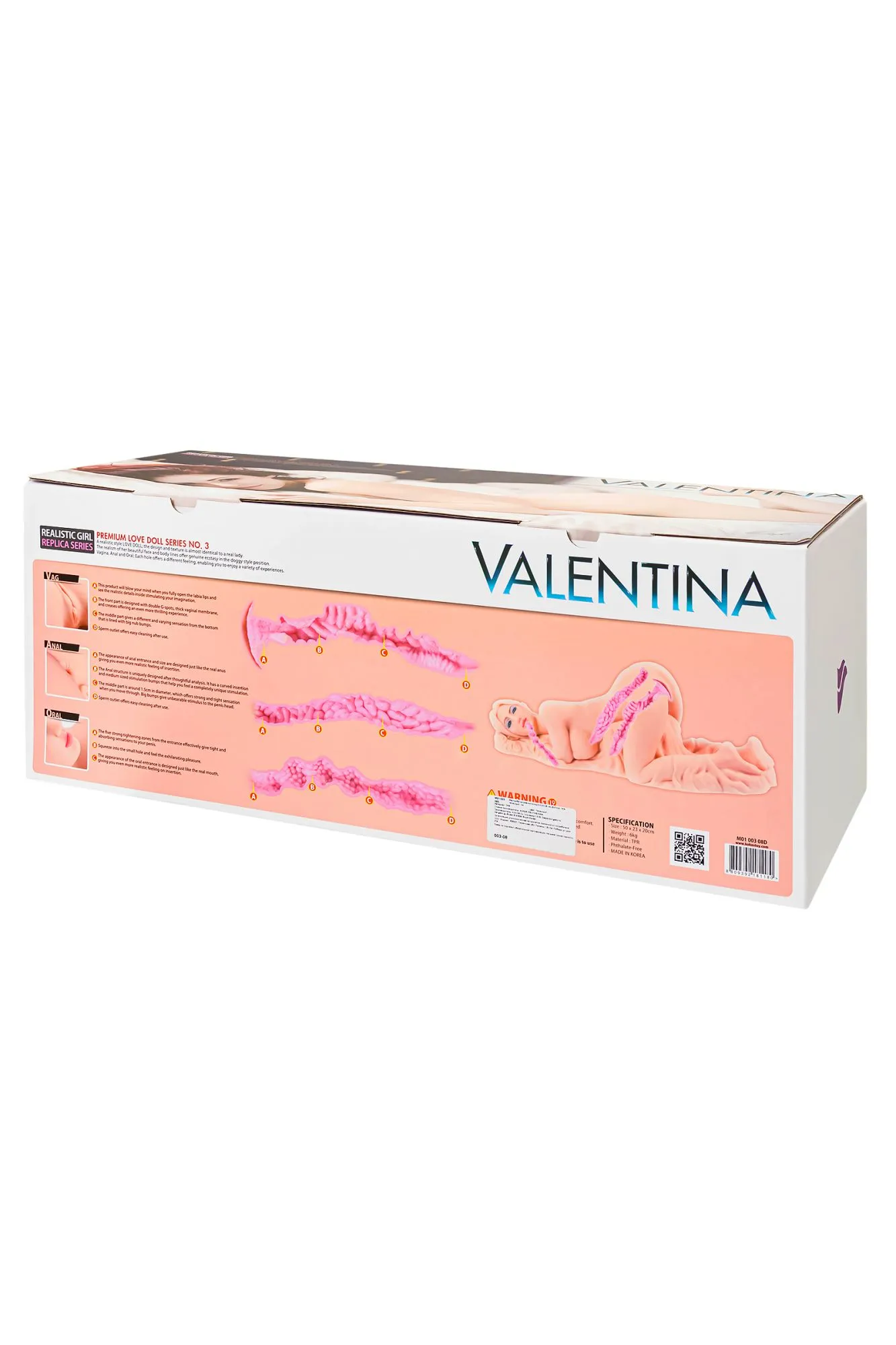 Реалистичный мастурбатор премиум-класса от знаменитого корейского бренда KOKOS кукла Valentina из серии Love Doll – это воплощение реализма, где прекрасное лицо и изысканные формы создают подлинный экстаз. Красотка Valentina призывно демонстрирует свои лучшие формы, приглашая поиграть с тремя любовными отверстиями – вагиной, анусом и ротиком. Все отверстия дарят разнообразные ощущения, а поза куклы придает пикантности интимному контакту. Уникальный материал обладает эластичностью, превосходящей природную мягкость. Внутренние каналы обеспечивают особо тесный контакт, передавая чувствительность к каждому сантиметру пениса. Вагинальный канал активно стимулирует пенис за счет выделяющейся зоны G, выпуклых изгибов и внутренних складочек. Анальный канал в виде гиперболизированной структуры дарит ощущения реального проникновения и особенно тесного контакта благодаря тугому проходу. Два канала имеют сквозные отверстия для простоты ухода, а также присоединения вибропуль или вибромассажеров (не в комплекте). Пухлые розовые губки созданы для реалистичного орального контакта. Внутренняя поверхность в виде мягких шариков напоминает язык и гортань, обеспечивая деликатную стимуляцию пениса. Закрытый тип канала создает мощную герметичность и вакуумное ощущение, усиливающее удовольствие. Ощутите магию двойного слоя – внешний мягкий и нежный, внутренний плотный и упругий – создают неповторимые впечатления. 3D-рельеф внутри мастурбатора стимулирует каждое движение пениса, даря невероятные ощущения. Яркий внутренний слой помогает воображению погрузиться в настоящий контакт с Valentina. Мастурбатор легко поддается вашим предпочтениям – регулируйте степень удовольствия, достигая финала по своему вкусу. Его гибкий корпус обеспечивает комфорт в каждом движении. Уникальный запатентованный материал, как и все высококачественные материалы линейки KOKOS премиум, безопасен, гигиеничен и не оказывает токсичного воздействия на организм человека. Рекомендуется очищать игрушку теплой водой, либо средством для очистки секс-игрушек, и использовать специальную пудру, которая защищает нежную поверхность и продлевает срок службы. Сквозные каналы облегчают очистку и уход. Рекомендуется использовать с лубрикантами на водной основе. Кукла Valentina – это 50 см реального наслаждения, предназначенного для каждого мужчины. Погрузитесь в мир эротических фантазий с KOKOS. Материал: TPR Форма: реалистичный полуторс Длина: 50 см, Ширина: 23 см Высота: 20 см Вес: 6 кг Цвет: телесный Страна бренда KOKOS: Корея