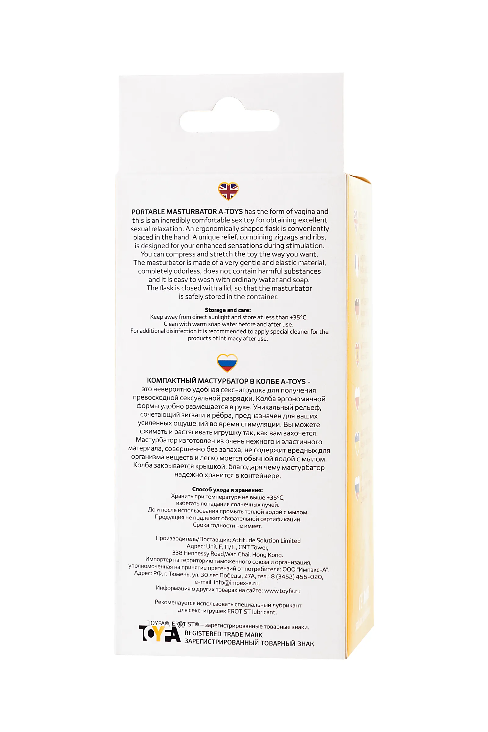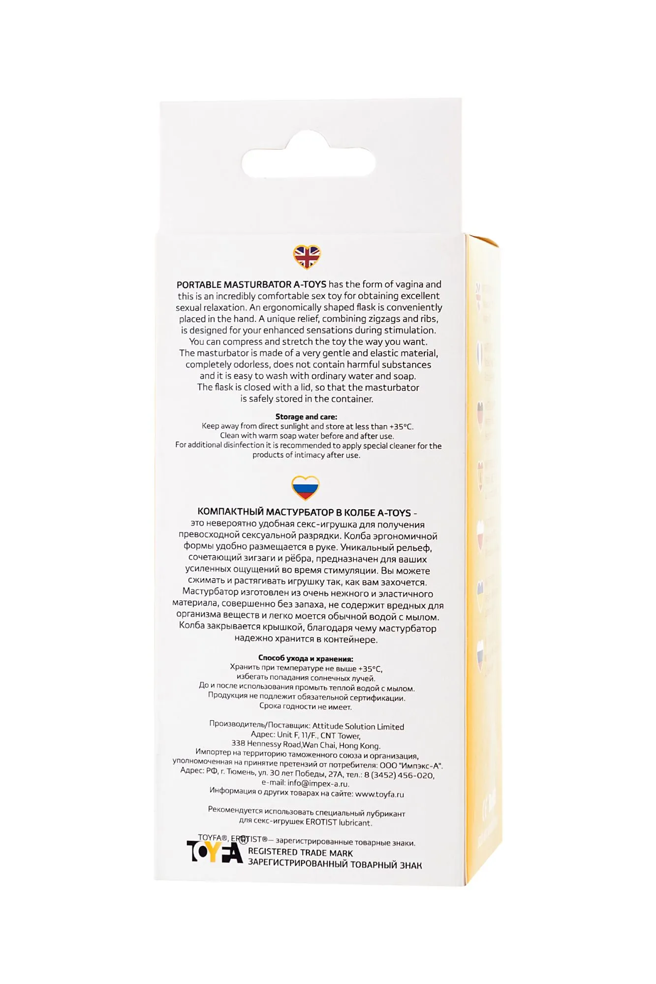 Компактный мастурбатор A-Toys Dion в виде анального отверстия - это невероятно удобная секс-игрушка для получения превосходной сексуальной разрядки. Колба эргономичной формы удобно размещается в руке. Игрушка не просто реалистично выглядит снаружи. Внутренняя поверхность снабжена ярко выраженным рельефом, который значительно усиливает ощущения при стимуляции. Вы можете сжимать и растягивать игрушку так, как вам захочется. Мастурбатор изготовлен из очень нежного и эластичного материала, совершенно без запаха, не содержит вредных для организма веществ и легко моется обычной водой с мылом. Колба закрывается крышкой, благодаря чему мастурбатор надежно хранится в контейнере.