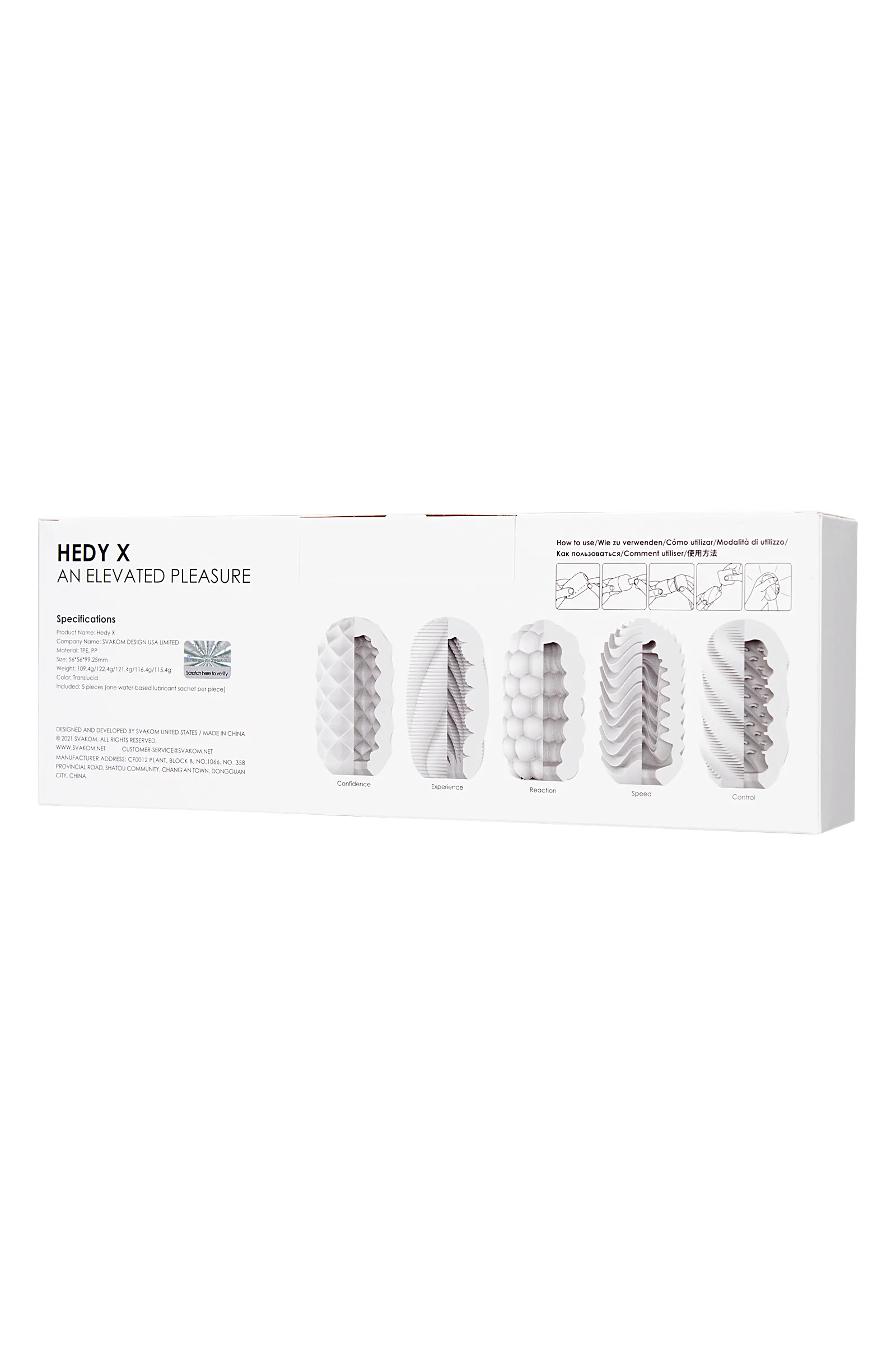 Серия Hedy X представляет собой коллекцию из 5 мастурбаторов, каждый из которых разработан с уникальным рельефом для максимального комфорта и удовольствия. Откройте упаковку, добавьте лубрикант и побалуйте себя. Совершенно новые текстуры, которые выведут вас на новый уровень Двусторонний рельеф приносит различные ощущения. Ультра-мягкий материал, реалистичное прикосновение. Многократное использование до 10 раз. Утолщенный материал для улучшения ощущений. Растягивается - один размер подходит всем. Ультра-сдержанный внешний вид. Легко моется. К каждому изделию прилагается специальный пакетик с лубрикантом. Изготовлен из медицинского TPE, каждый мастурбатор безопасен для тела и невероятно мягкий...вас ждет захватывающий опыт. Hedy X станет идеальный подарком, благодаря своему прекрасному внешнему виду, с изысканным внутренним дизайном и эластичной текстурой. Идеально подходит для того, чтобы повсюду брать с собой. Использовать только со смазкой на водной основе! В данный набор входит по 1 экземпляру из всей серии Hedy X.