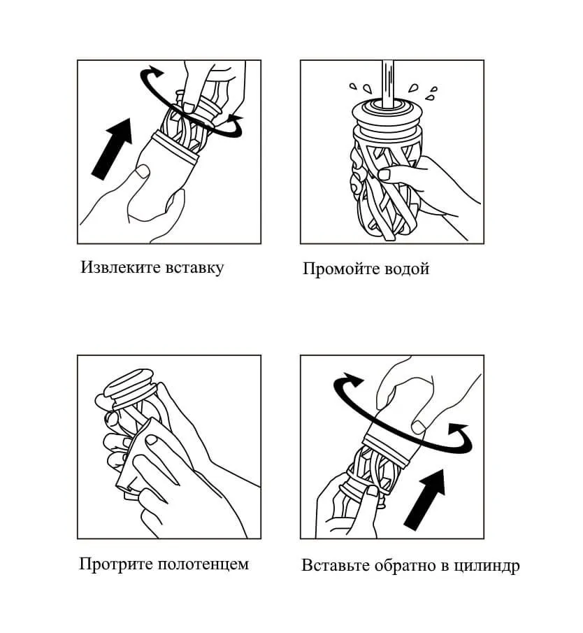 Мастурбатор не нуждается в сложном уходе и прост в использовании. После игры выньте стимулятор из корпуса и промойте теплой водой. Вытрите его полотенцем и поместите обратно.